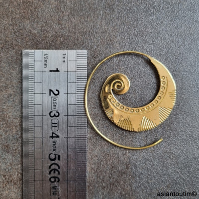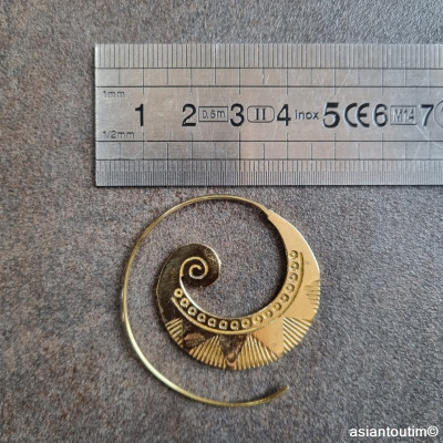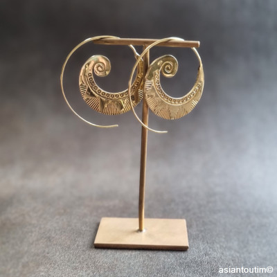 Superbes boucles d'oreilles Spirale Tribale, boucles bohème en laiton.