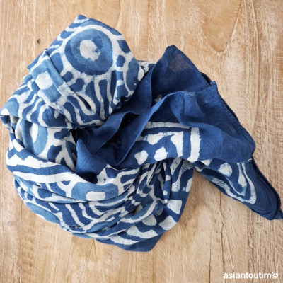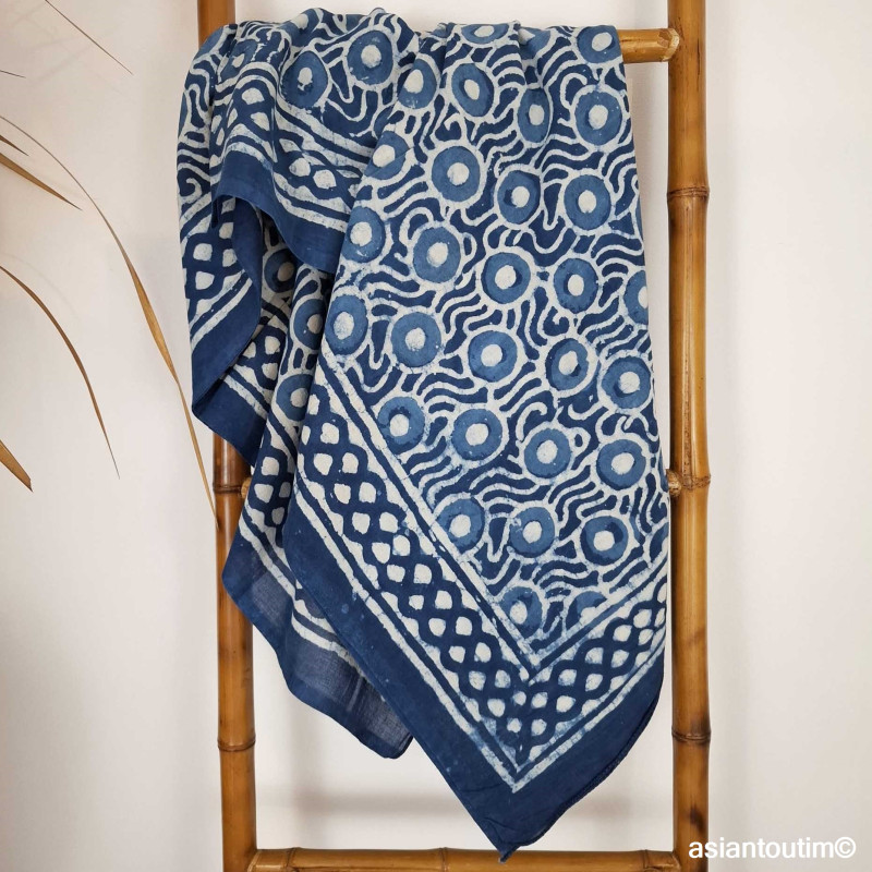 L'étole en coton au motif Indigo 26.2 réalisé à la main au block print, technique d'impression indienne, vous suit partout été comme hiver. Roulée, pliée, en jupe le total look bohème pour vos tenues avec cette belle pièce de coton grand teint. On ne la quitte plus, on craque pour elle...