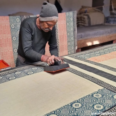 100 % coton, imprimé à la main grâce à la technique du tampon de bois ou hand block print, technique d'impression ancestrale indienne. Toujours de toutes petites séries dans mes collections imprimées main, il n'est pas unique mais presque !