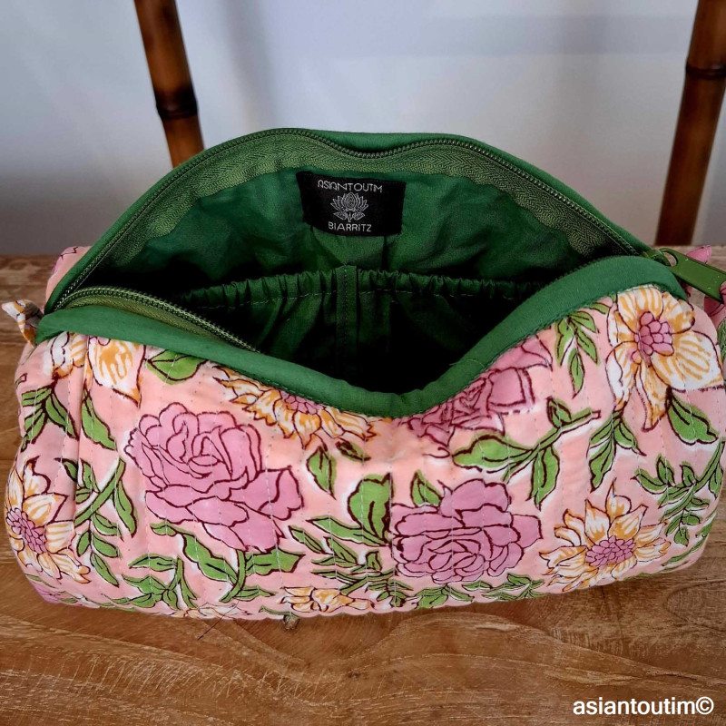 La trousse de toilette indienne Coco, coloris Flora est très pratique avec son ouverture zippée et ses 2 poches plaquées de chaque côté. Une trousse de toilette indienne à l’esprit bobo-chic que l'on glisse dans son sac de voyage ou son cabas au quotidien. Imprimée au tampon de bois technique ancestrale indienne, les petites imperfections sont le gage d'un travail artisanal de qualité.