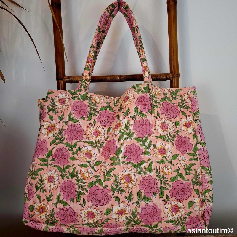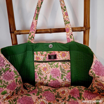 Le tissu est matelassé, coton intérieur, extérieur et garniture. Une grande poche zippée en intérieur. Un grand sac léger, fermeture par bouton aimanté. lavable main ou machine à 30 degrés.