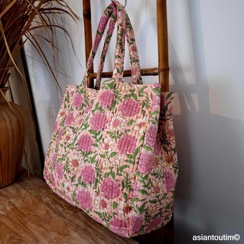 Le Cabas Flora à shopper Vite ! Collection Capsule pour ce grand cabas matelassé, fabriqué en petite quantité ce qui en fait un sac quasi unique !