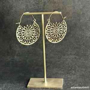 Boucles d’oreilles bohème en laiton de haute qualité, sans nickel, légères et élégantes. Bijoux artisanaux parfaits pour un style bohème chic naturel. 🇮🇳