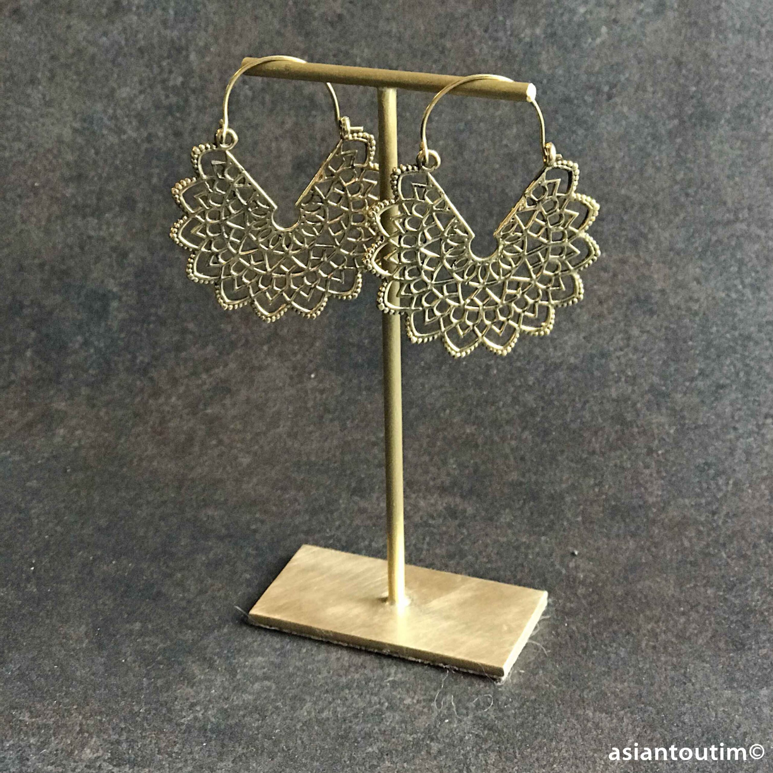 Boucles d’oreilles bohème en laiton de haute qualité, sans nickel, légères et élégantes. Bijoux artisanaux parfaits pour un style bohème chic naturel. 🇮🇳