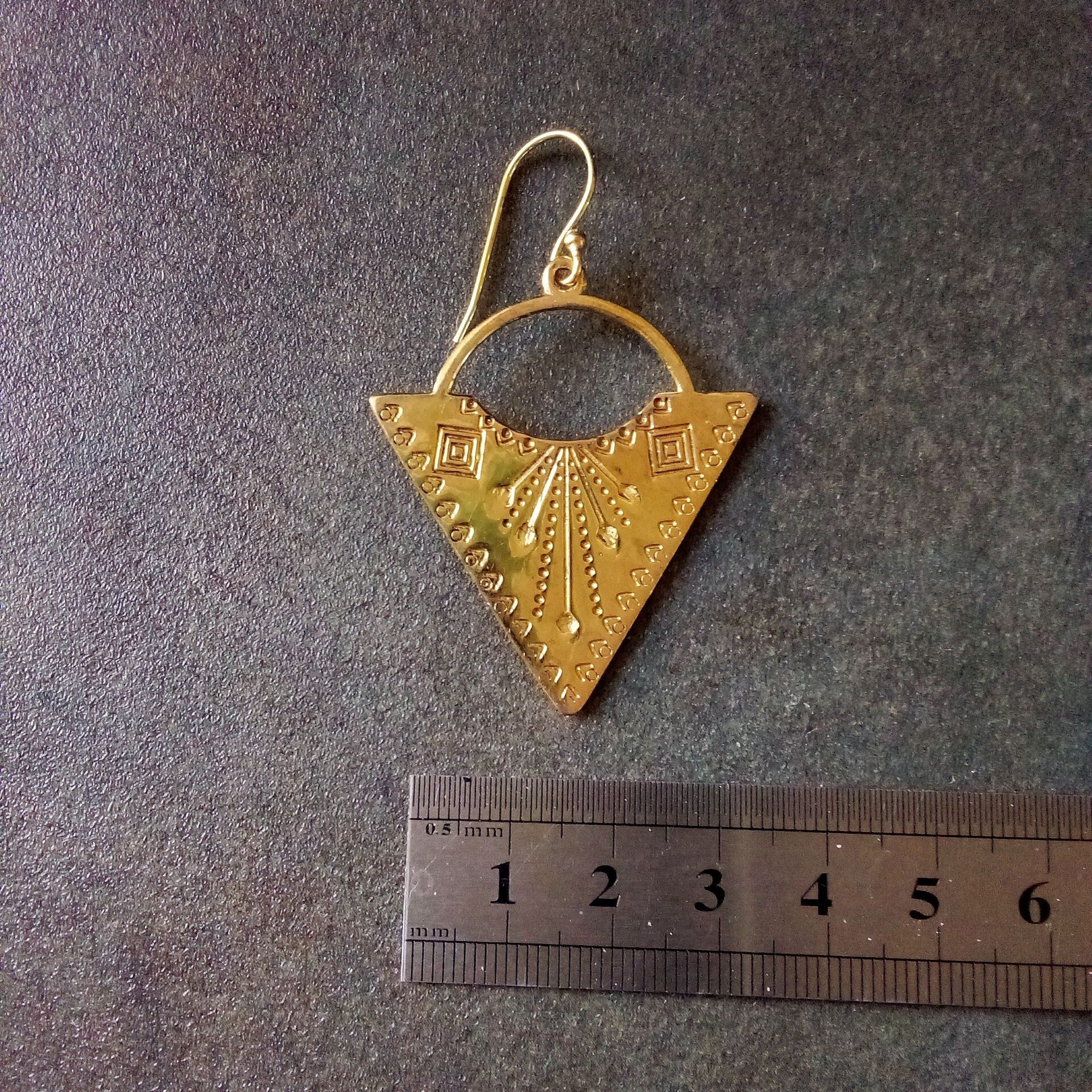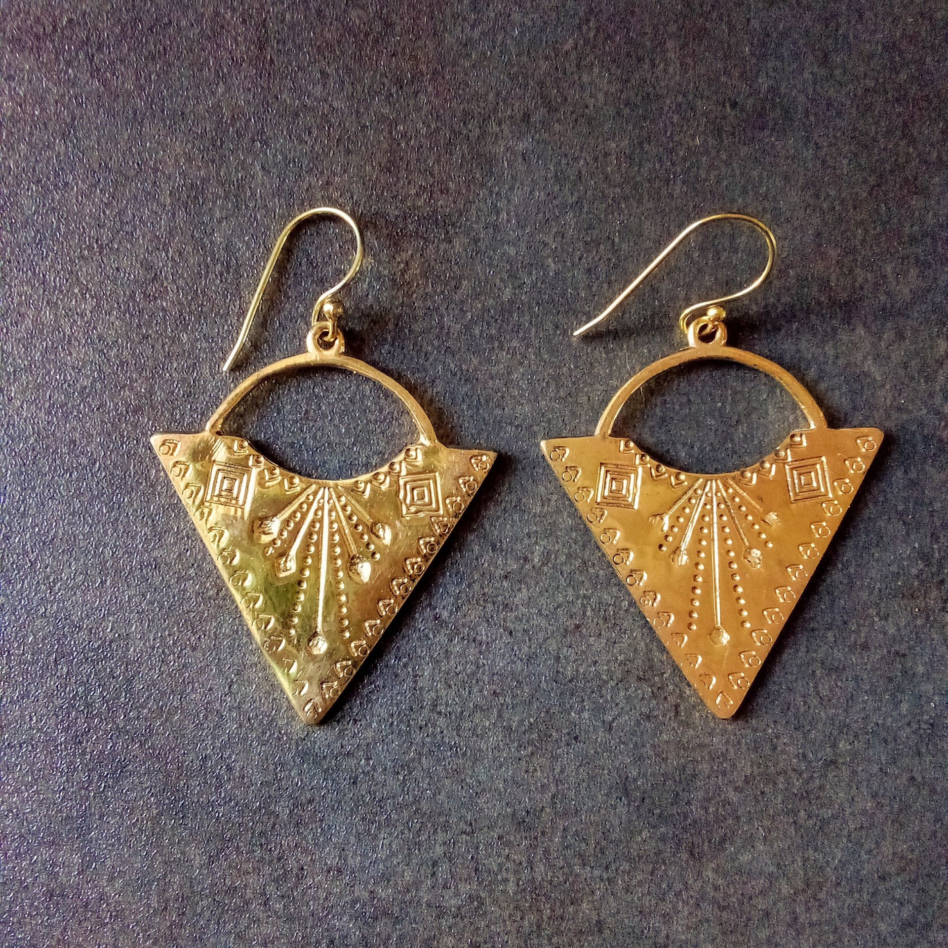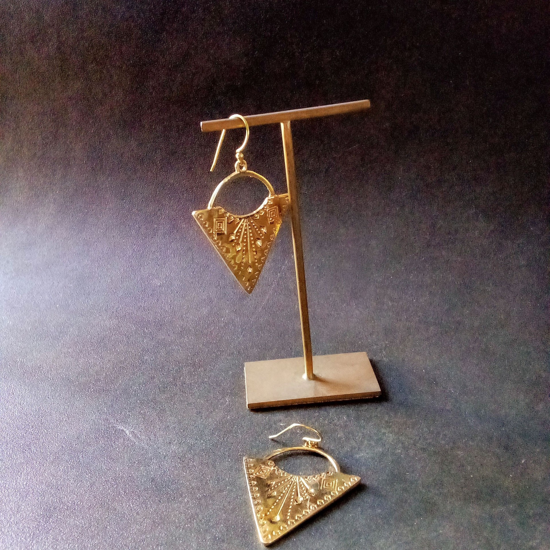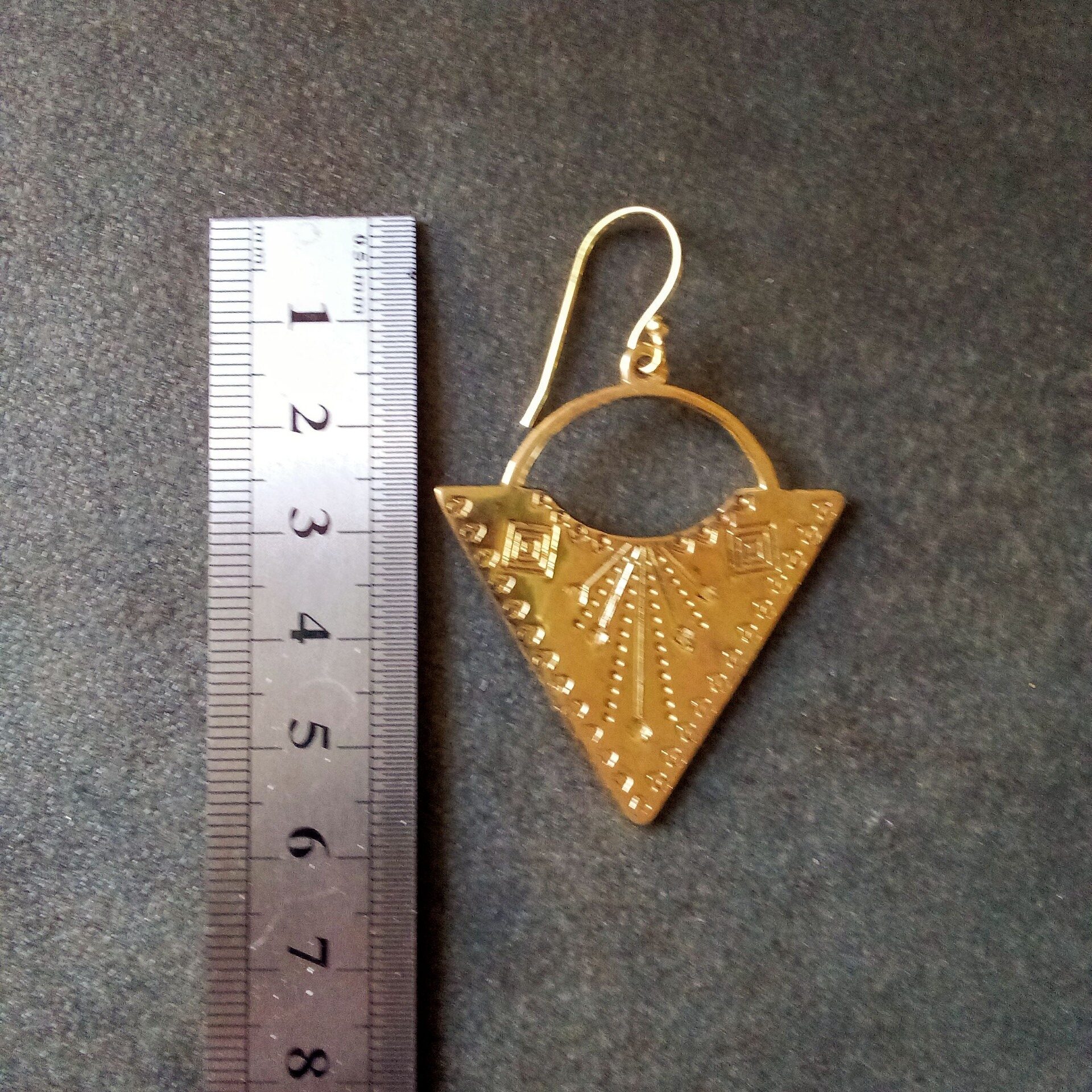 Boucles d’oreilles bohème triangle en laiton de haute qualité, sans nickel, légères et élégantes. Bijoux artisanaux parfaits pour un style bohème chic naturel. 🇮🇳
