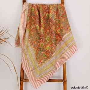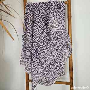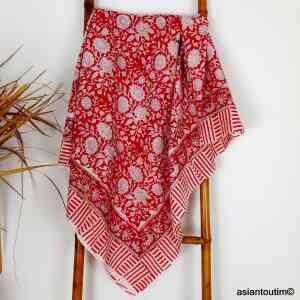 • Foulard carré coton bohème Sanganer fait main. Coloris Nomade