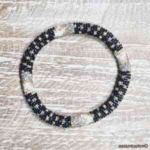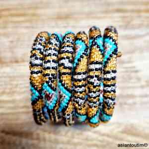 Bracelet népalais roll-on fait main, crocheté en fil de coton élastique et perles de verre.