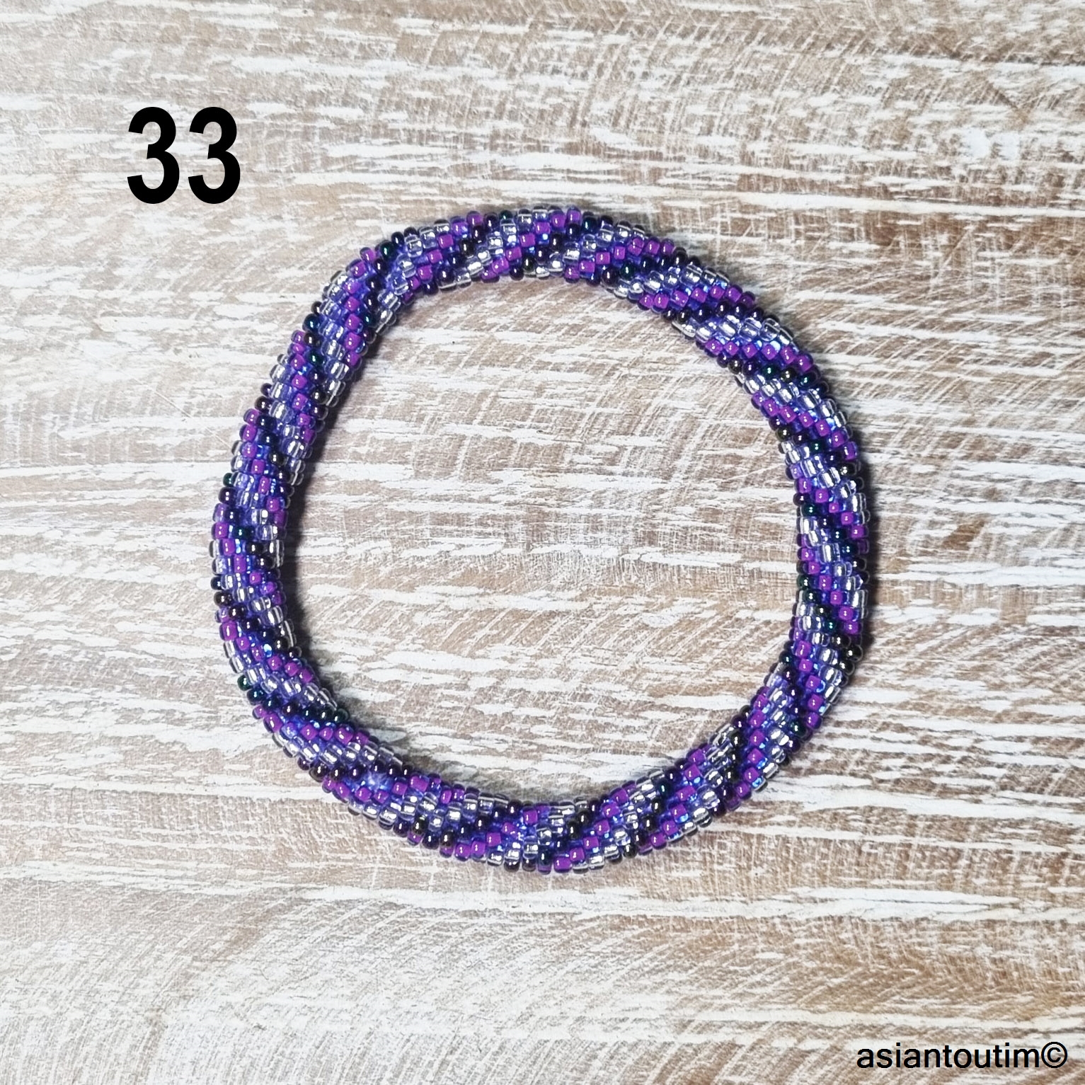 Bracelet népalais roll-on fait main, crocheté en fil de coton élastique et perles de verre.