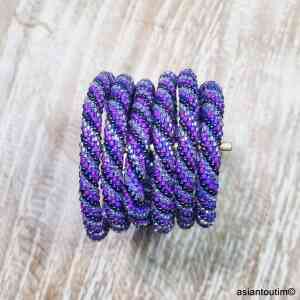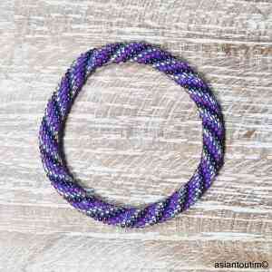 Bracelet népalais roll-on fait main, crocheté en fil de coton élastique et perles de verre.