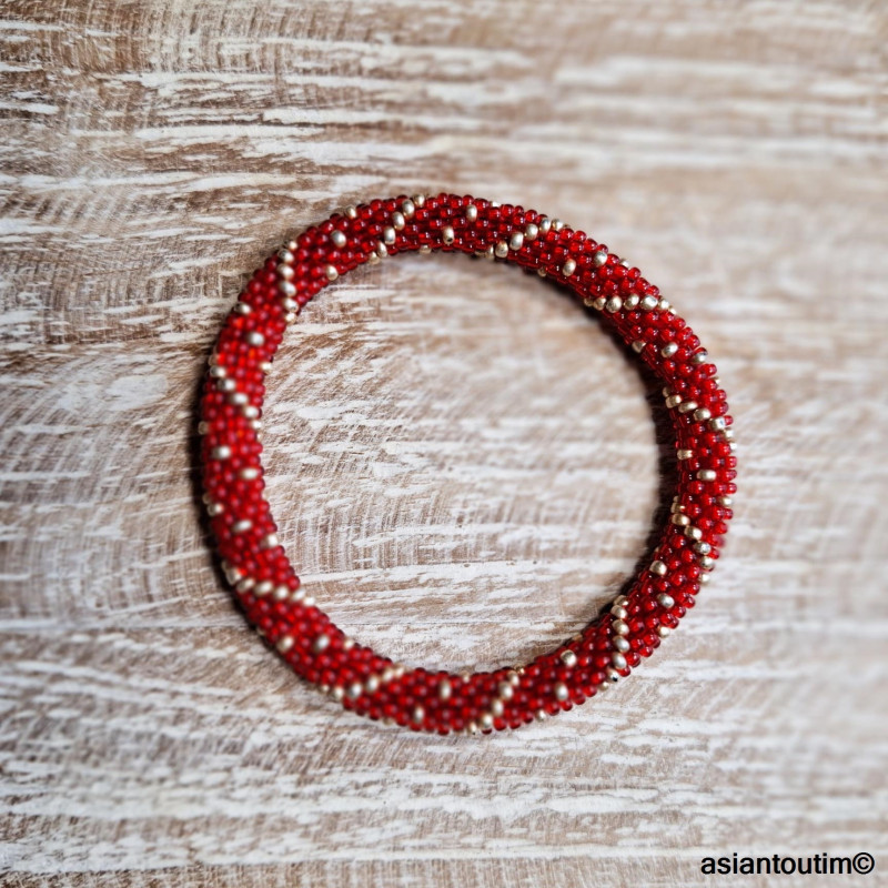 Bracelet népalais roll-on fait main, crocheté en fil de coton élastique et perles de verre.