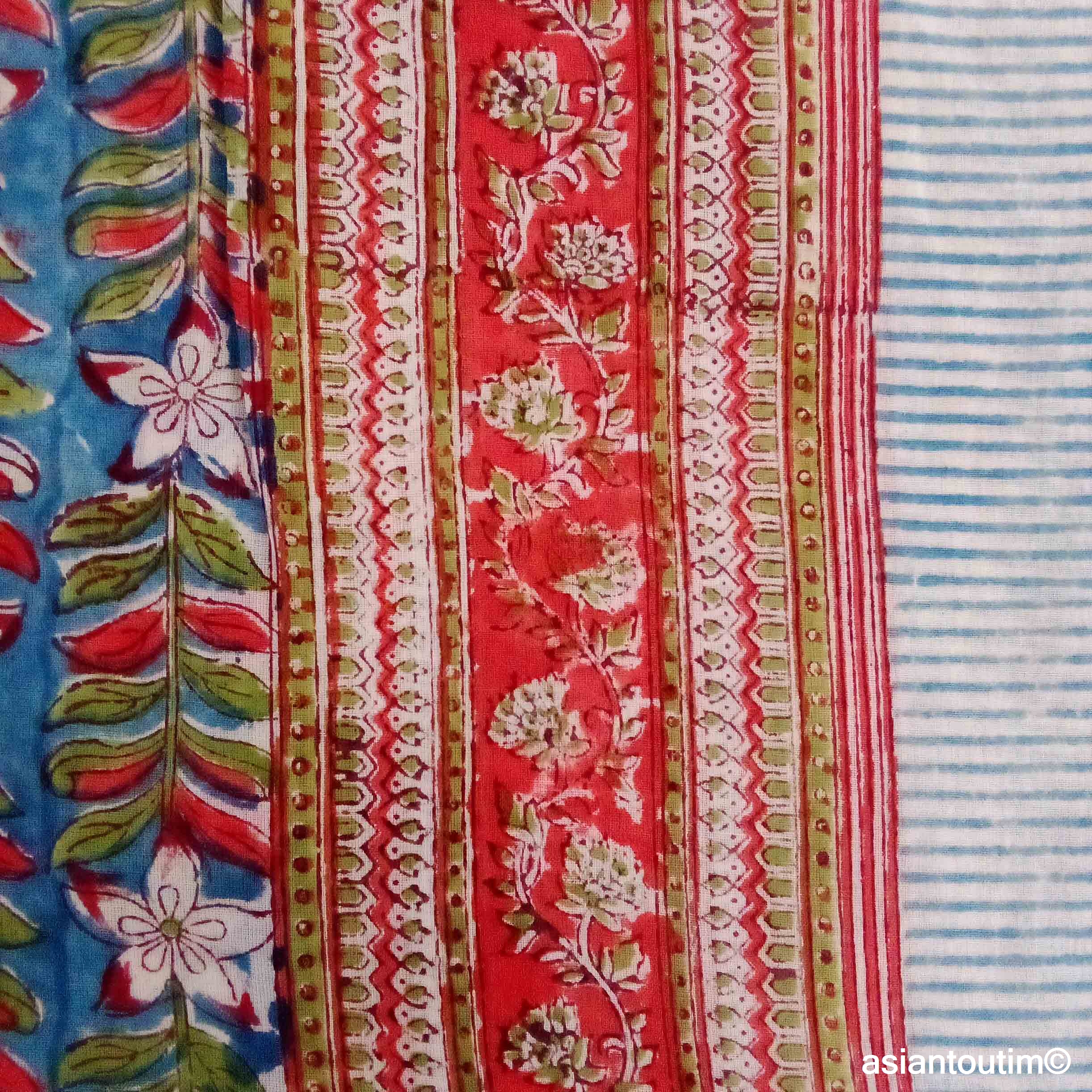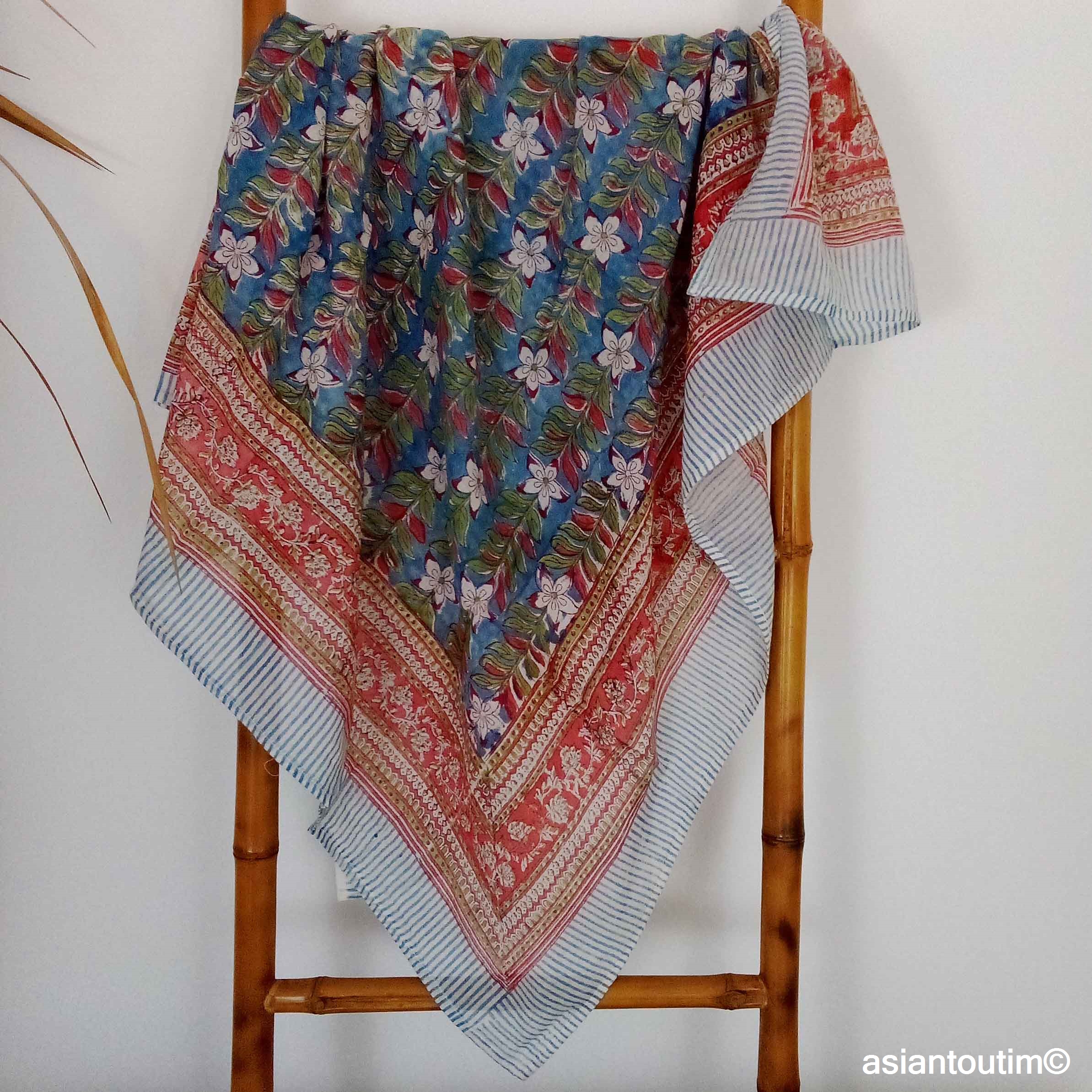 🧕Foulard carré en coton Sanganer block print fait main en Inde.🇮🇳