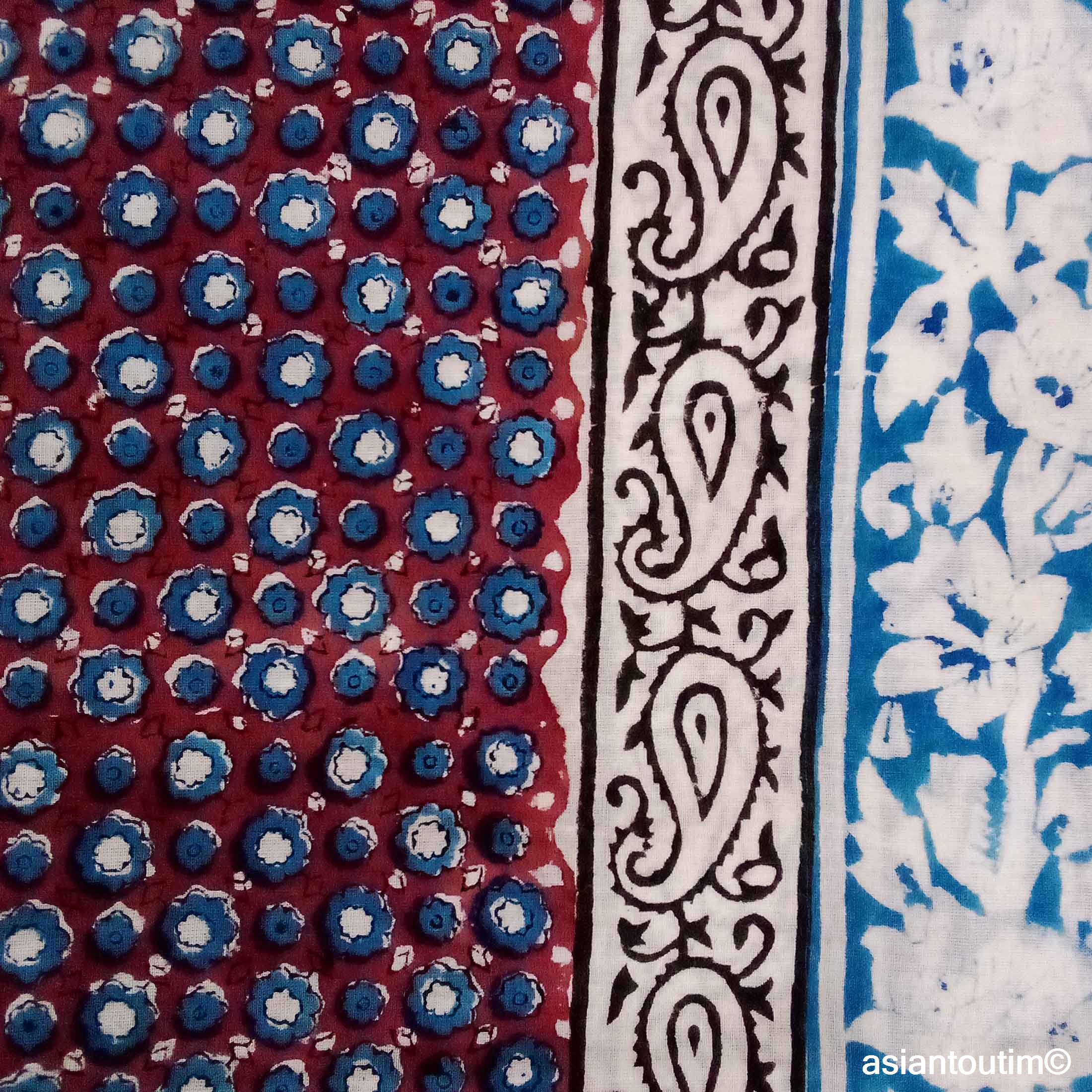 🧕Foulard carré en coton Sanganer block print fait main en Inde.🇮🇳