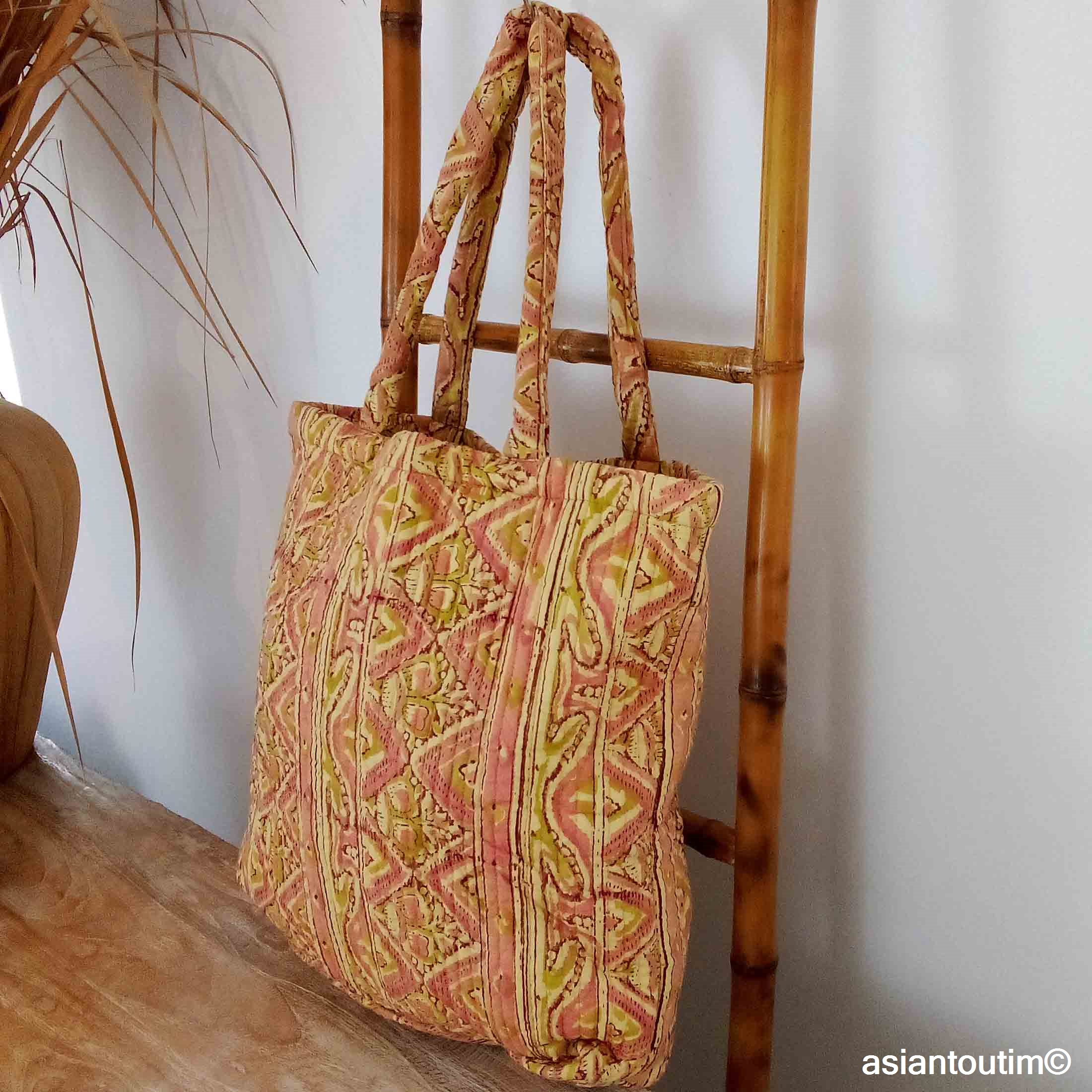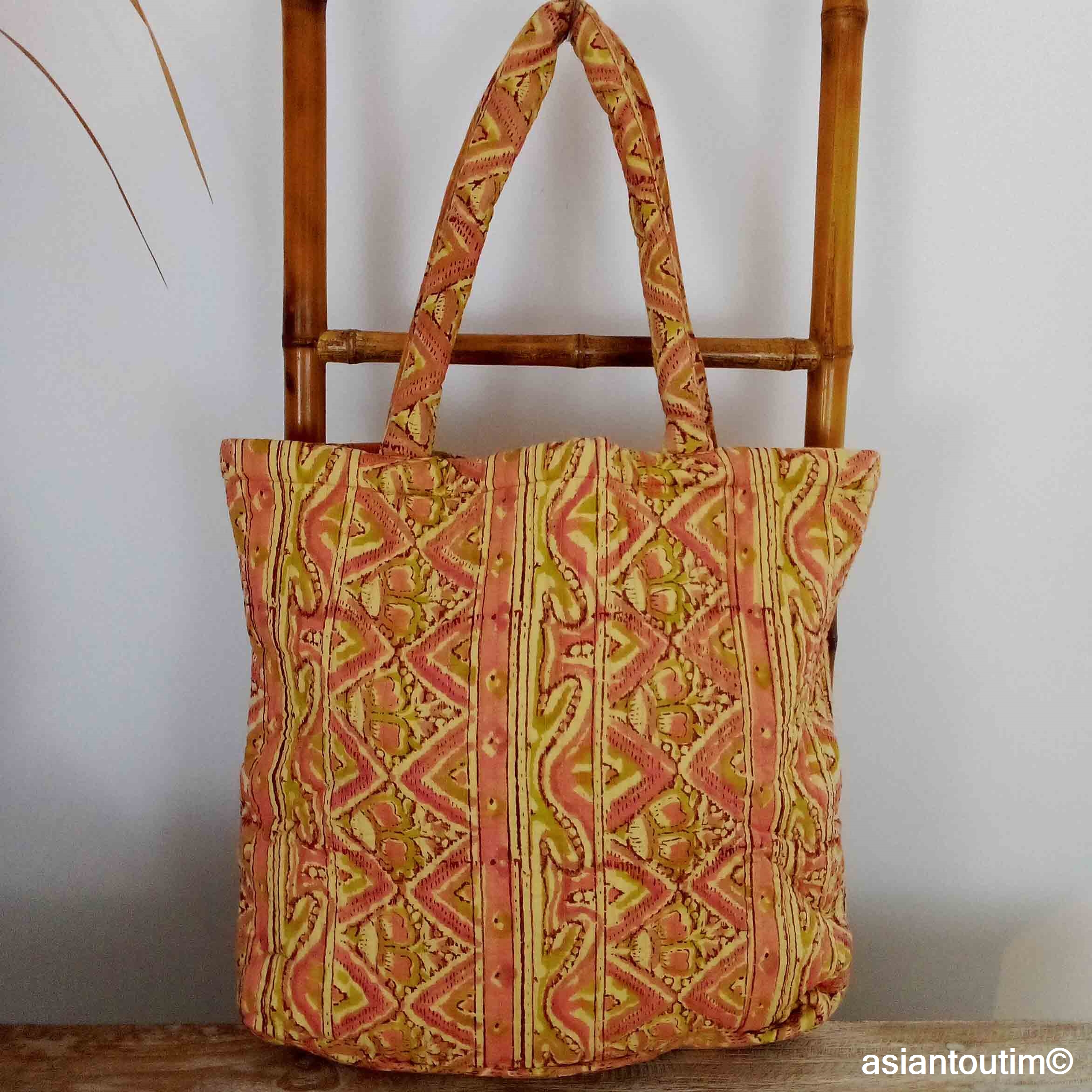 Foulard carré coton bohème Sanganer fait main. Coloris Rajput