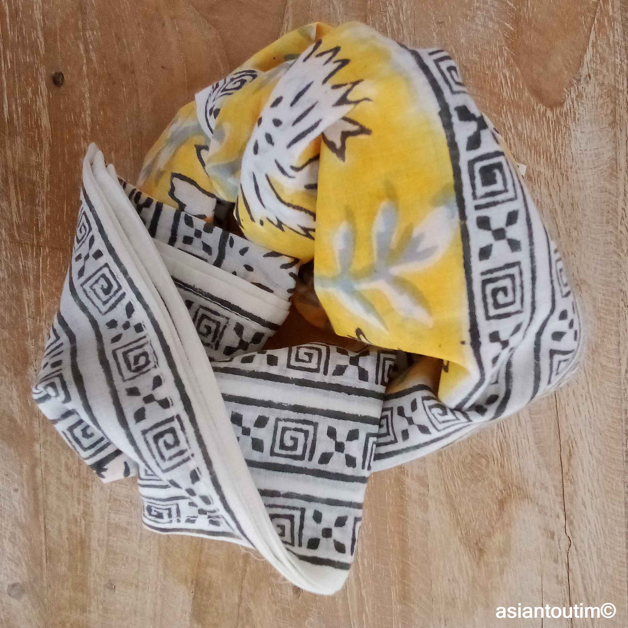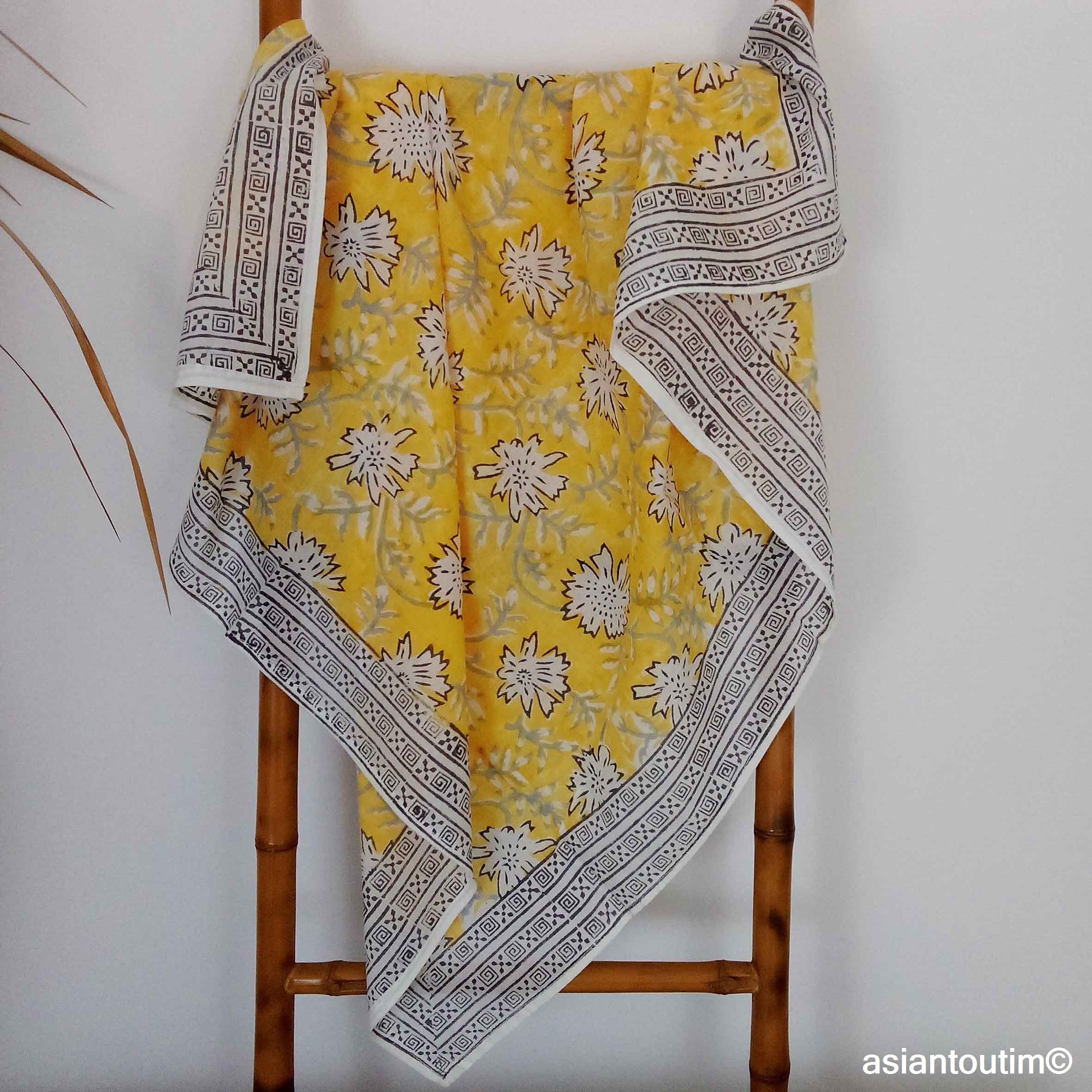 🧕Foulard carré en coton Sanganer block print fait main en Inde.🇮🇳