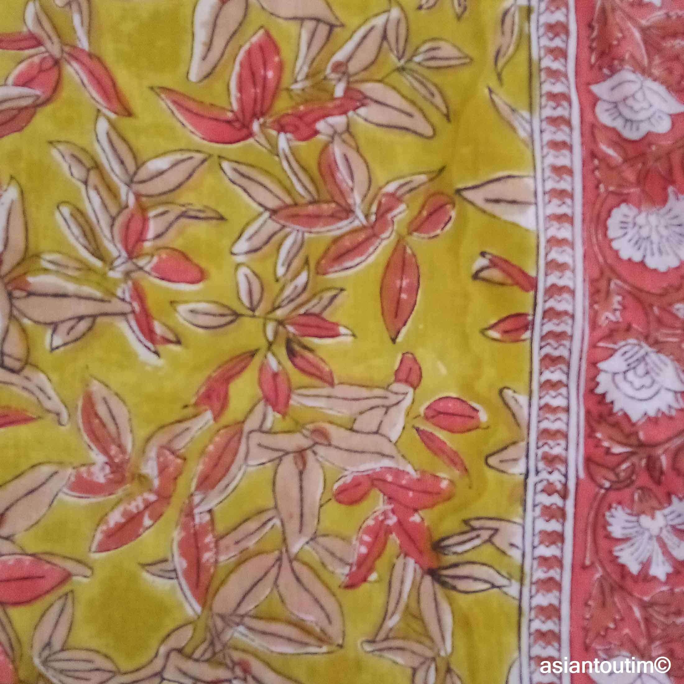 🧕Foulard carré en coton Sanganer block print fait main en Inde.🇮🇳