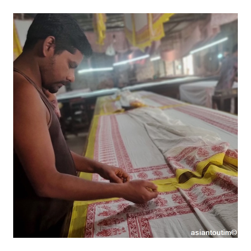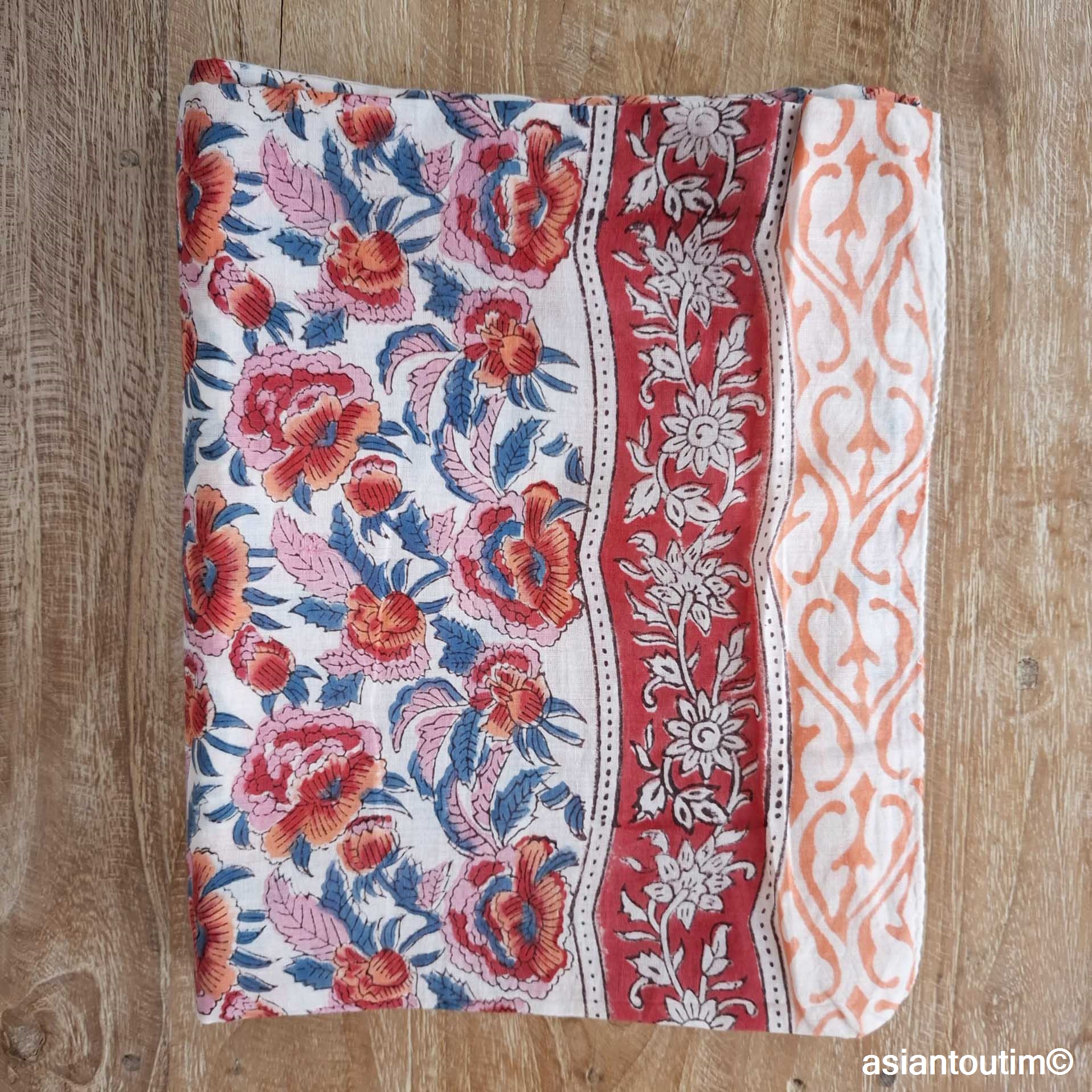 L’étole en coton au motif Sanganer 26.15 réalisée à la main au block print, technique d’impression indienne, vous suit partout été comme hiver.