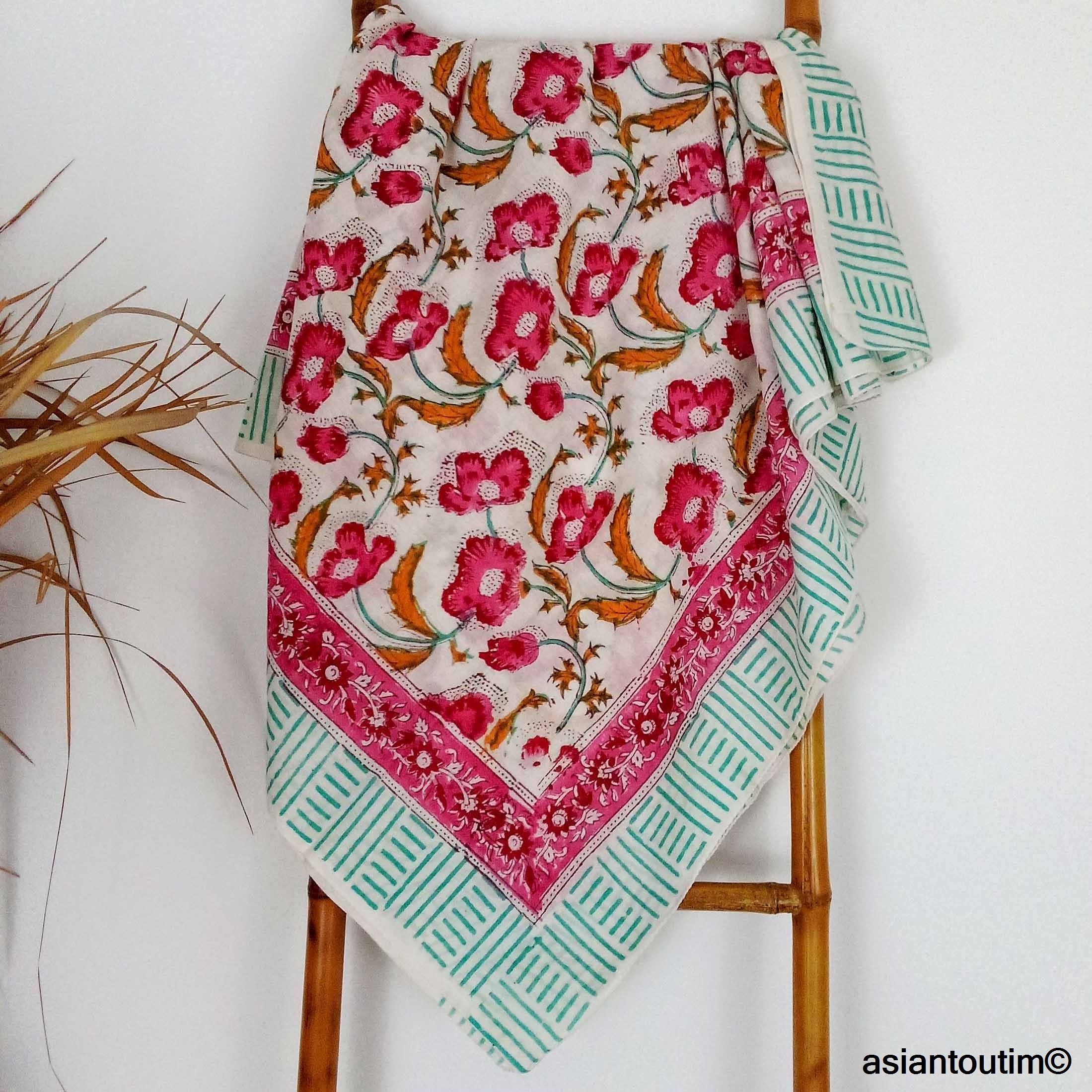 Idéal pour compléter une tenue estivale, voyager léger ou offrir un cadeau original, ce foulard paréo block print Sanganer incarne l’élégance naturelle et le charme de l’artisanat indien.