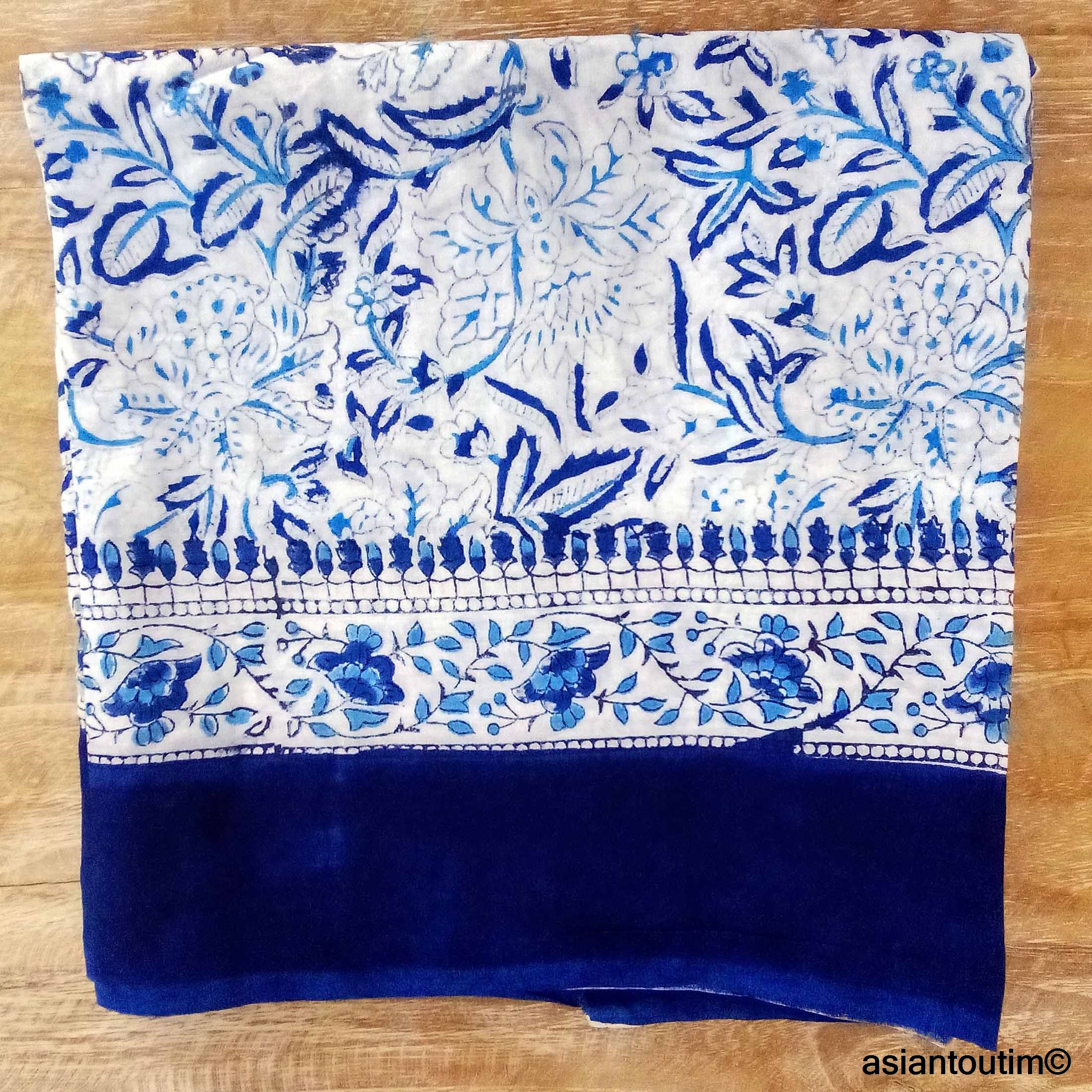 Idéal pour compléter une tenue estivale, voyager léger ou offrir un cadeau original, ce foulard paréo block print Sanganer incarne l’élégance naturelle et le charme de l’artisanat indien.