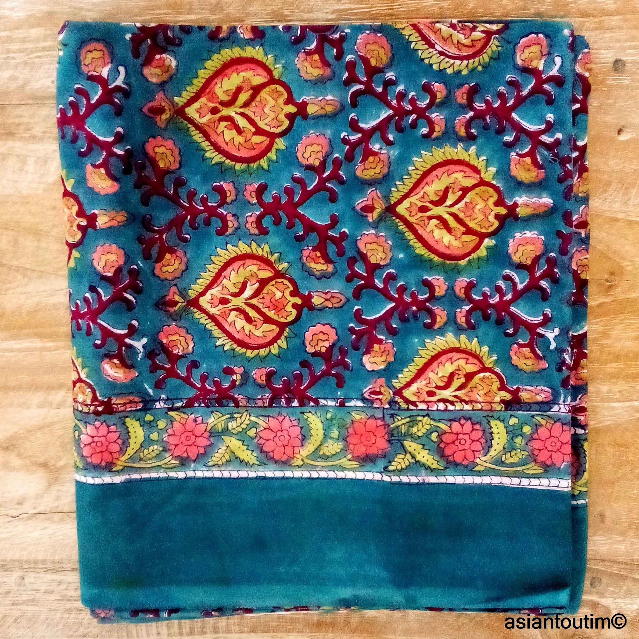 Idéal pour compléter une tenue estivale, voyager léger ou offrir un cadeau original, ce foulard paréo block print Sanganer incarne l’élégance naturelle et le charme de l’artisanat indien.