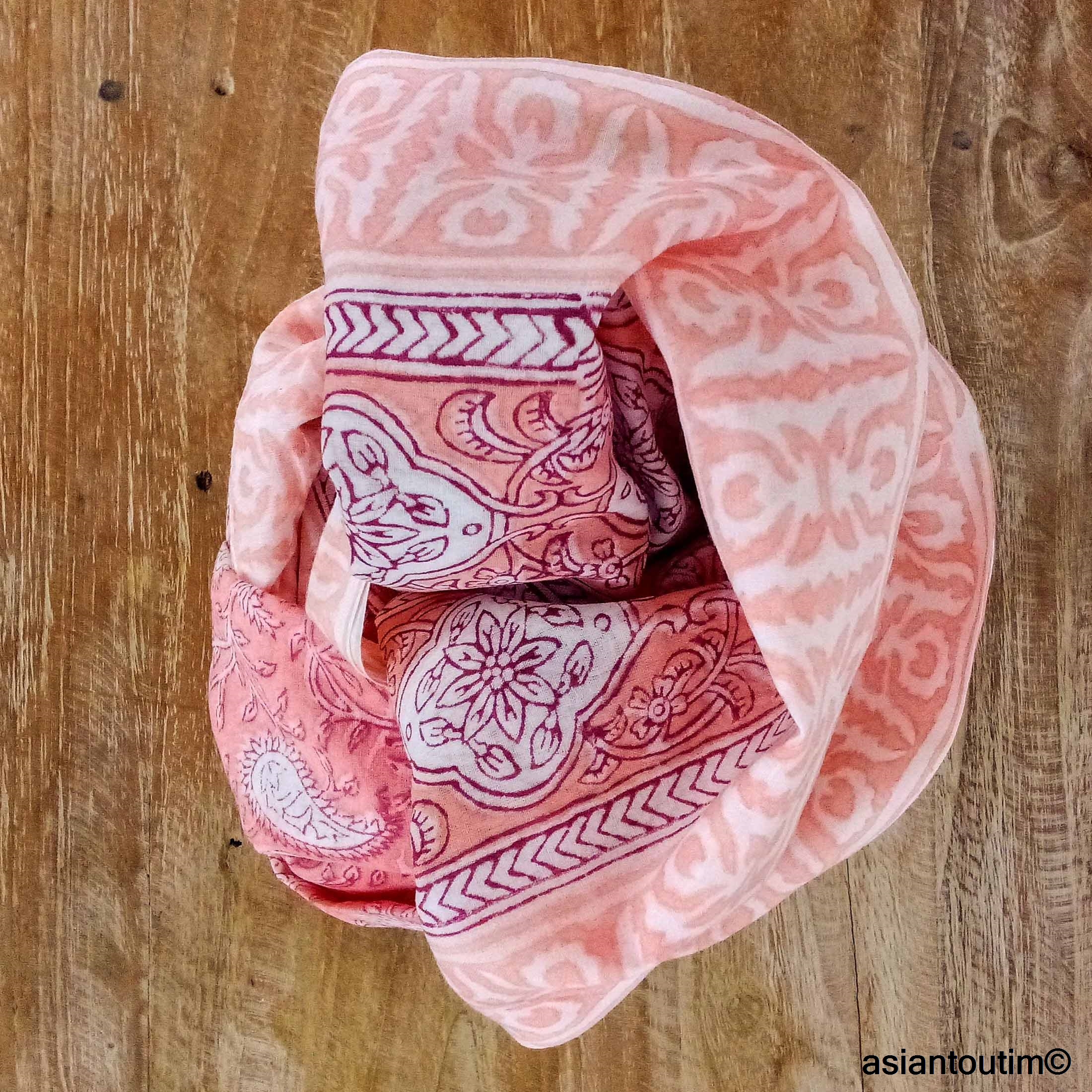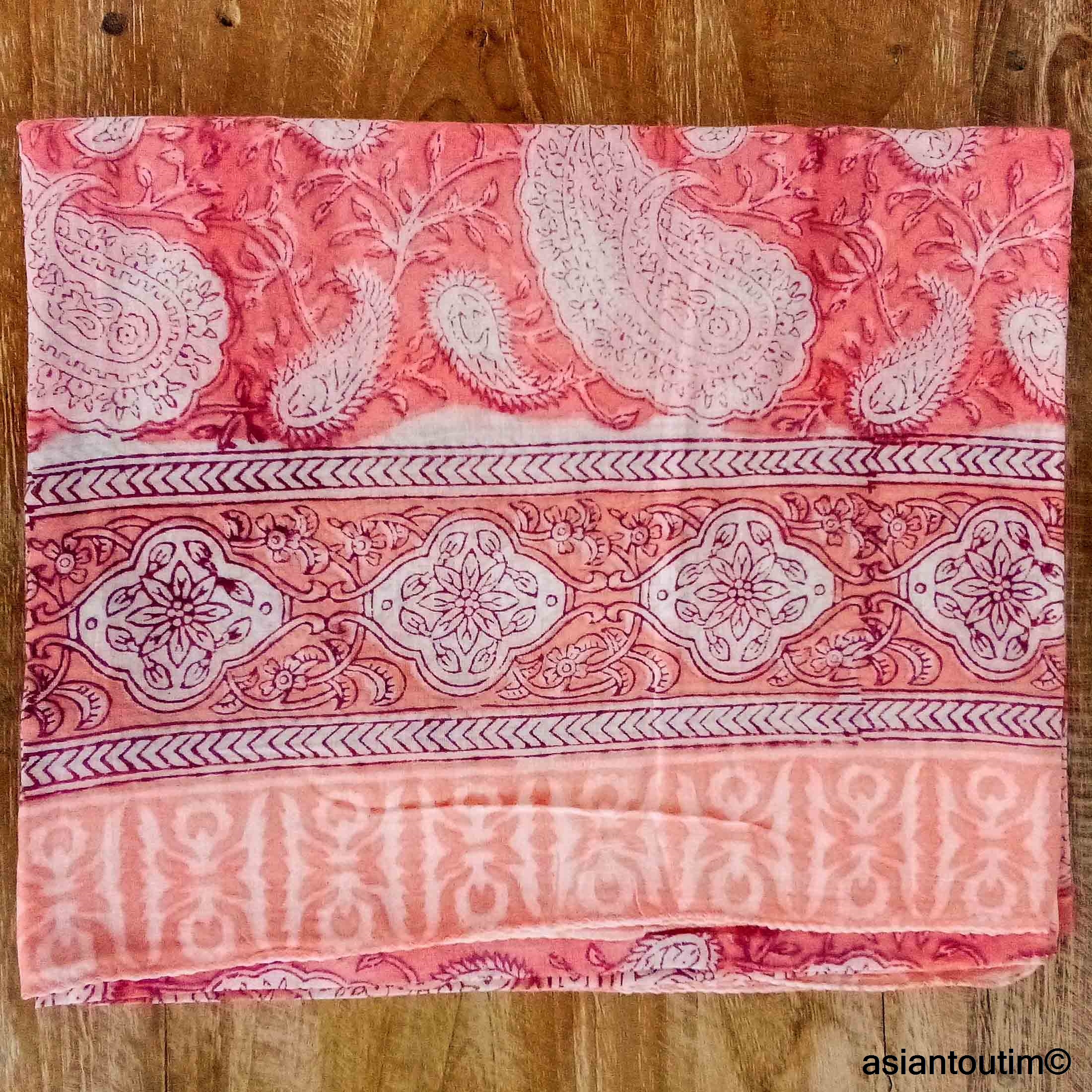 L’étole en coton au motif Sanganer 26.37 réalisée à la main au block print, technique d’impression indienne, vous suit partout été comme hiver.