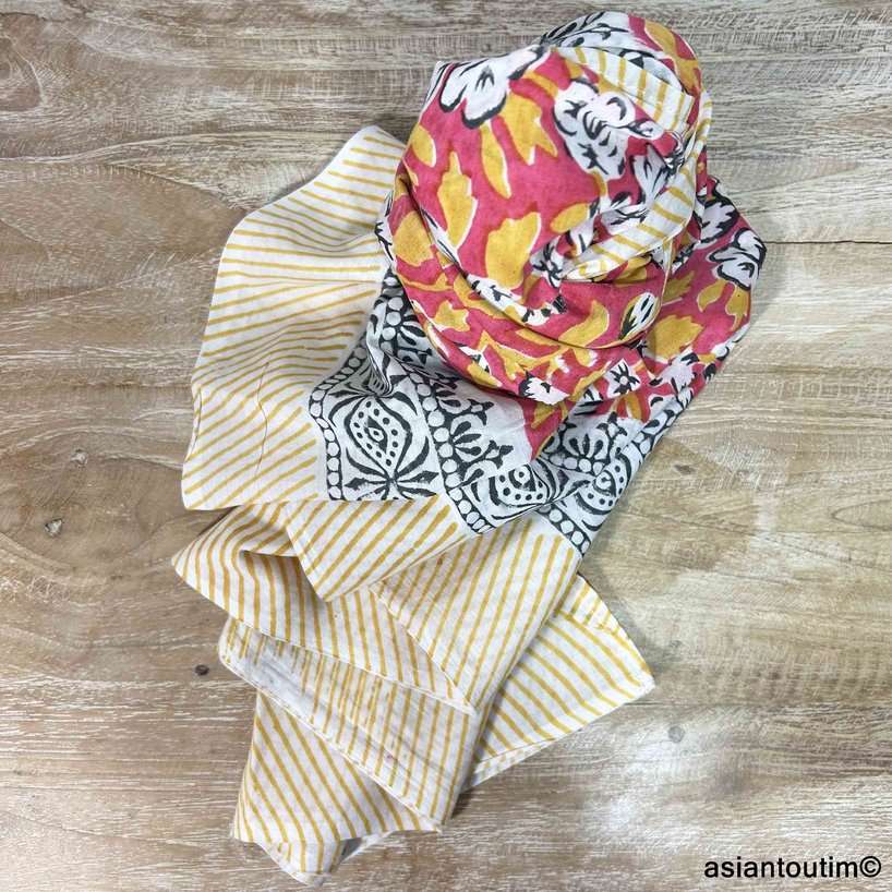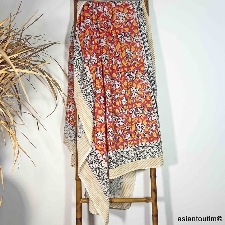 Idéal pour compléter une tenue estivale, voyager léger ou offrir un cadeau original, ce foulard paréo block print Sanganer incarne l’élégance naturelle et le charme de l’artisanat indien.