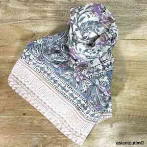 L’étole en coton au motif Sanganer 26.47 réalisée à la main au block print, technique d’impression indienne, vous suit partout été comme hiver.