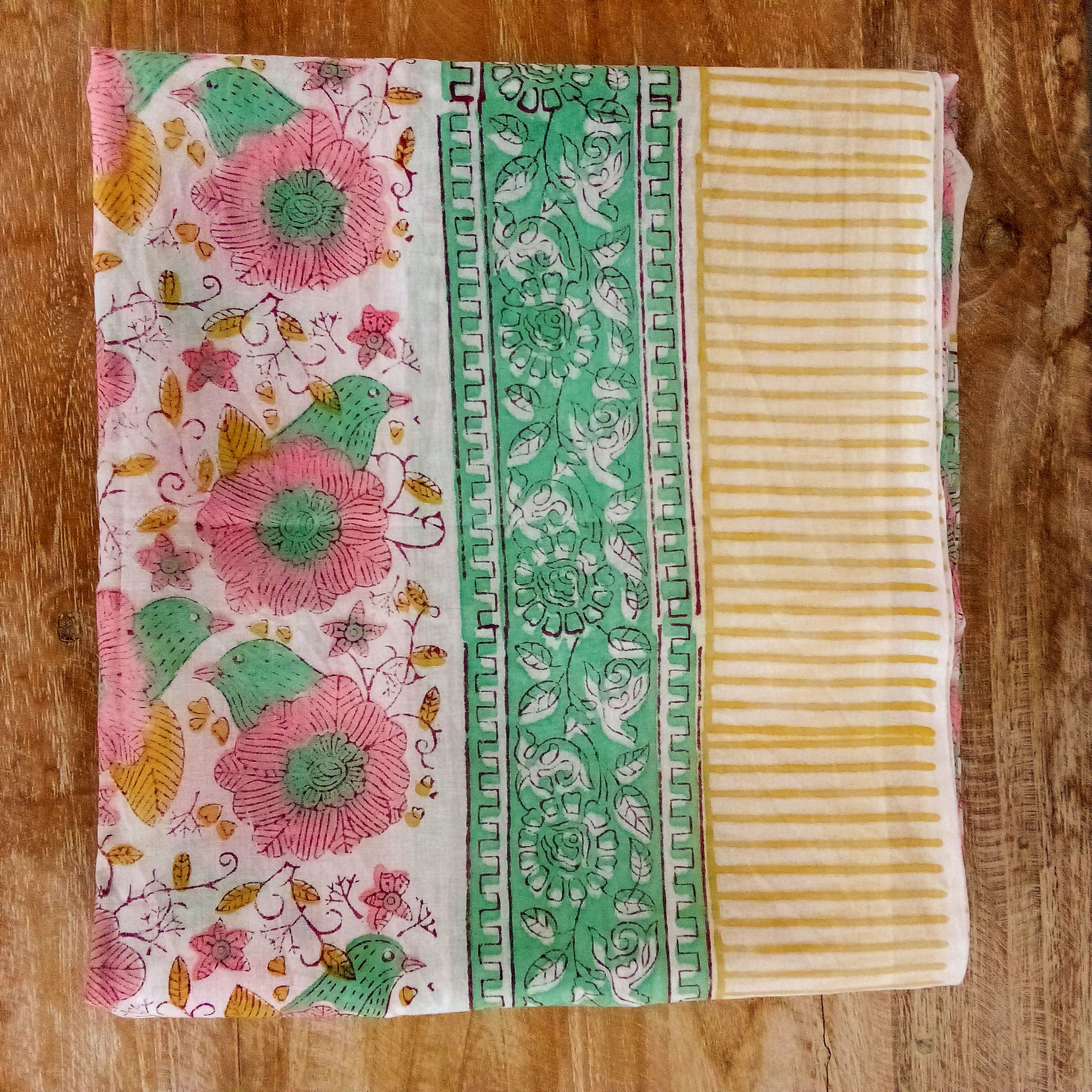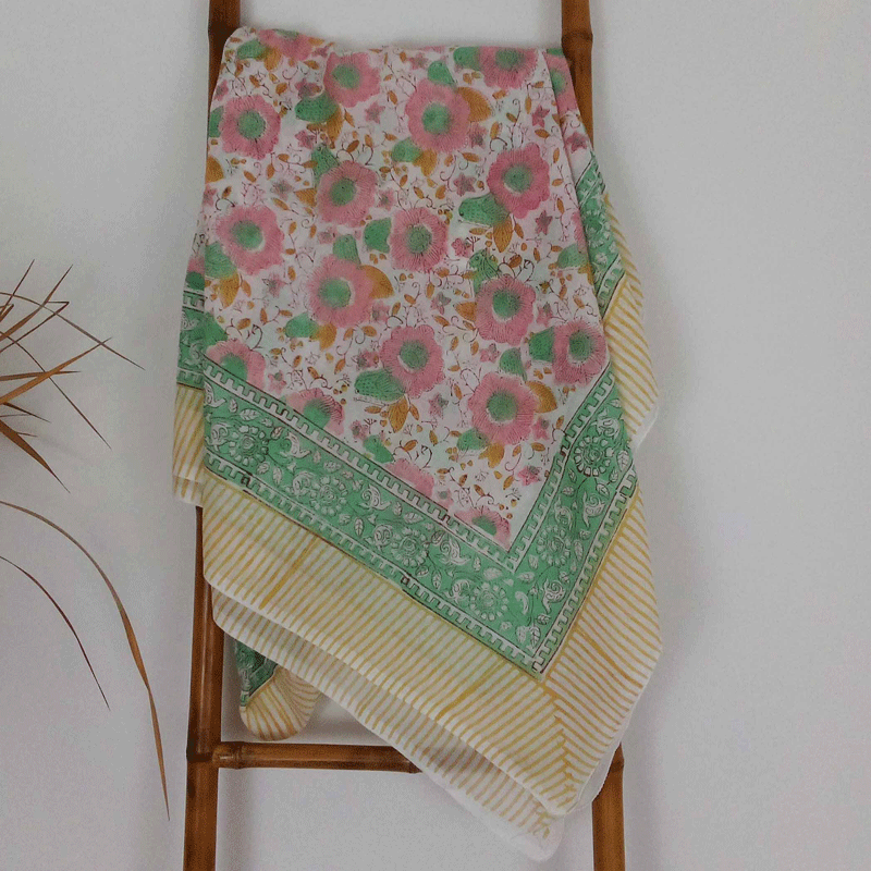Idéal pour compléter une tenue estivale, voyager léger ou offrir un cadeau original, ce foulard paréo block print Sanganer incarne l’élégance naturelle et le charme de l’artisanat indien.