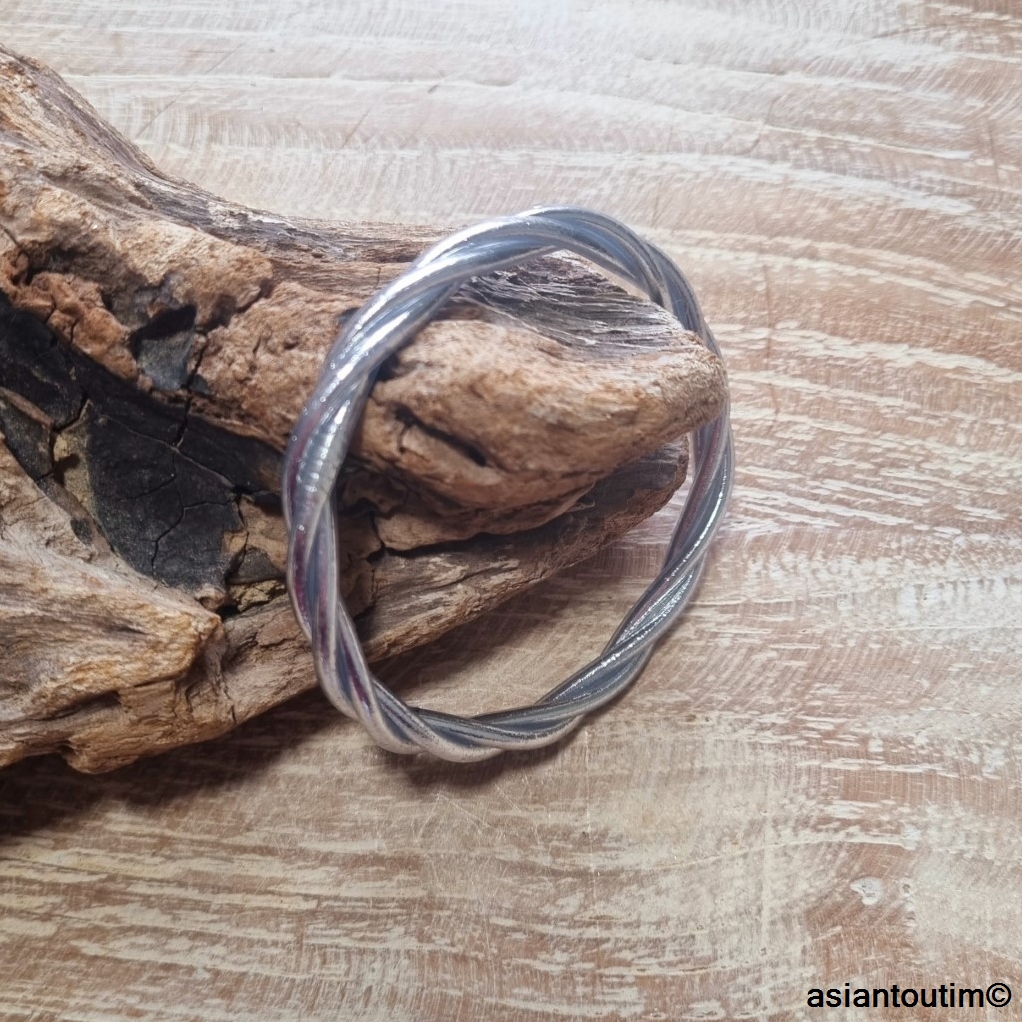 Un ensemble de joncs mantra bouddhistes argent porte-bonheur, fait main dans un temple. Des joncs souples en caoutchouc emplis de feuilles argent utilisées par les bouddhistes pour le culte. Fermeture scellée non collée.