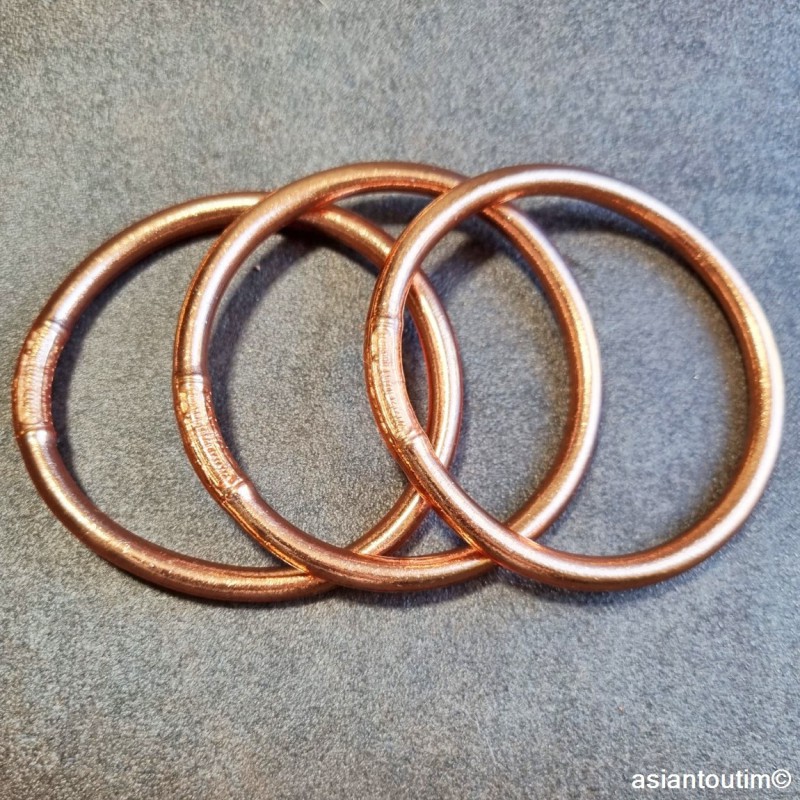 Jonc bouddhiste cuivré clair mantra, façonné artisanalement dans un temple thaïlandais selon des traditions ancestrales. Symbole de protection, de sérénité et de chance, ce bracelet sacré allie spiritualité et élégance intemporelle. Idéal à porter seul ou en accumulation.