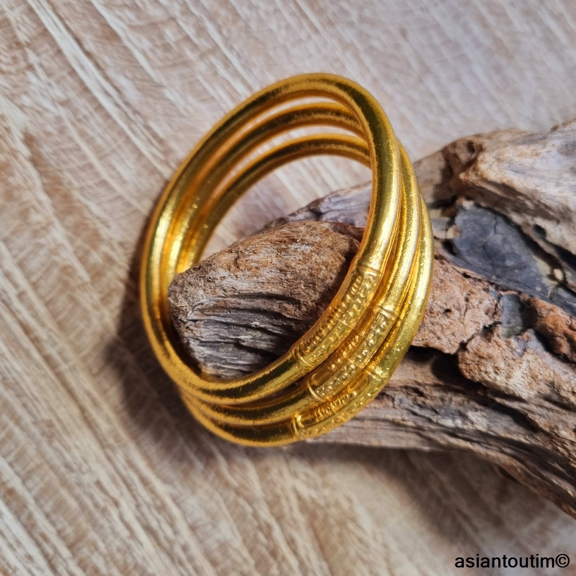 • 🔮 Un jonc bouddhiste authentique doré, béni par la tradition