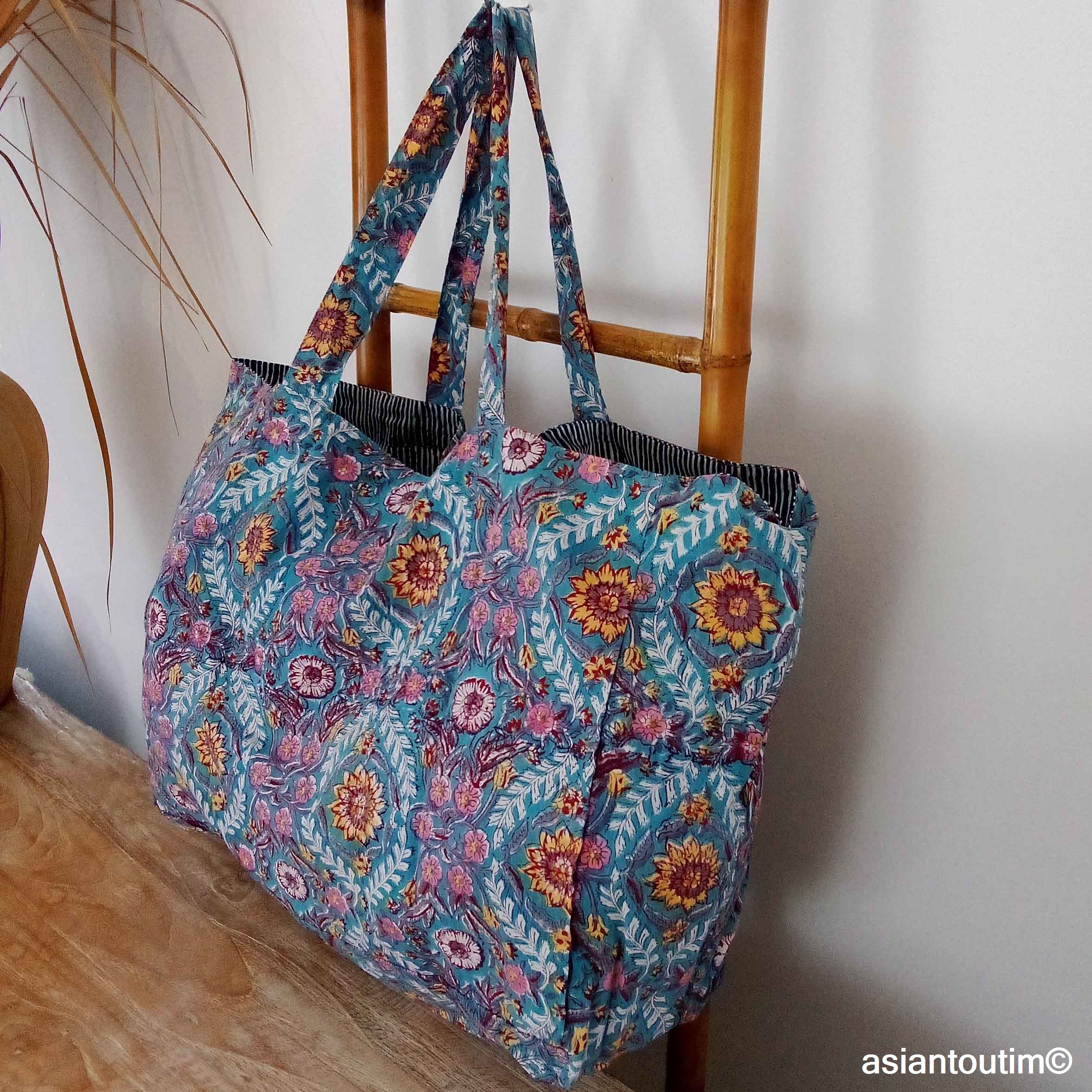 • Maxi Cabas Beach réversible en coton Coloris India