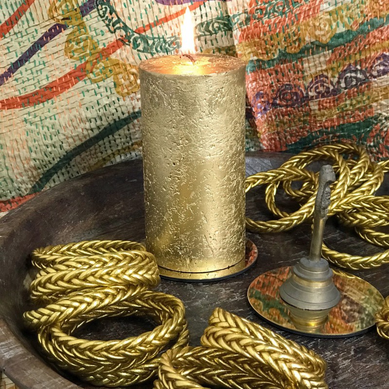 Bracelet de temple bouddhiste gold tressé. Un bracelet tressé, souple et fin empli de paillettes or porte bonheur.