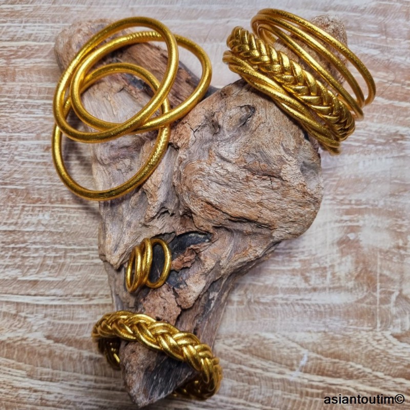 Jonc Bouddhiste Traditionnel Doré Tressé