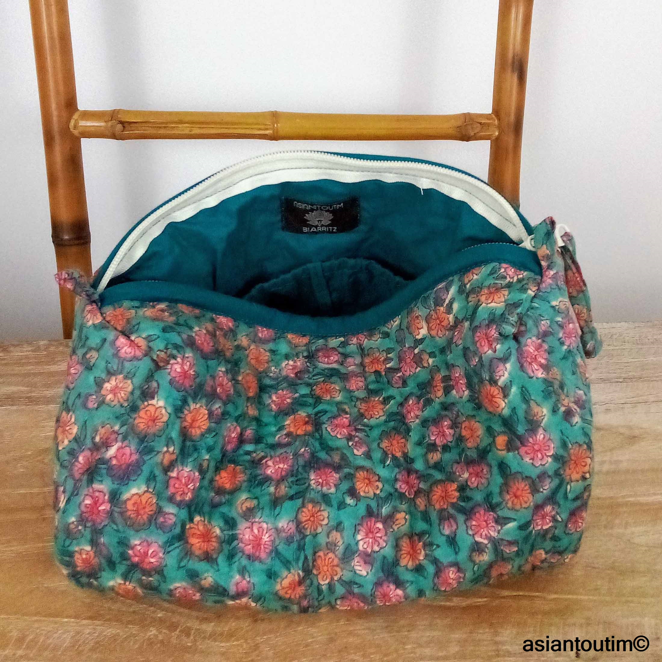 Pochette florale artisanale en coton, doublée, imprimée selon la technique indienne du hand block print. Chaque pièce est unique et révèle tout le charme de l’artisanat traditionnel. Parfaite pour ranger maquillage, accessoires ou petits essentiels du quotidien.