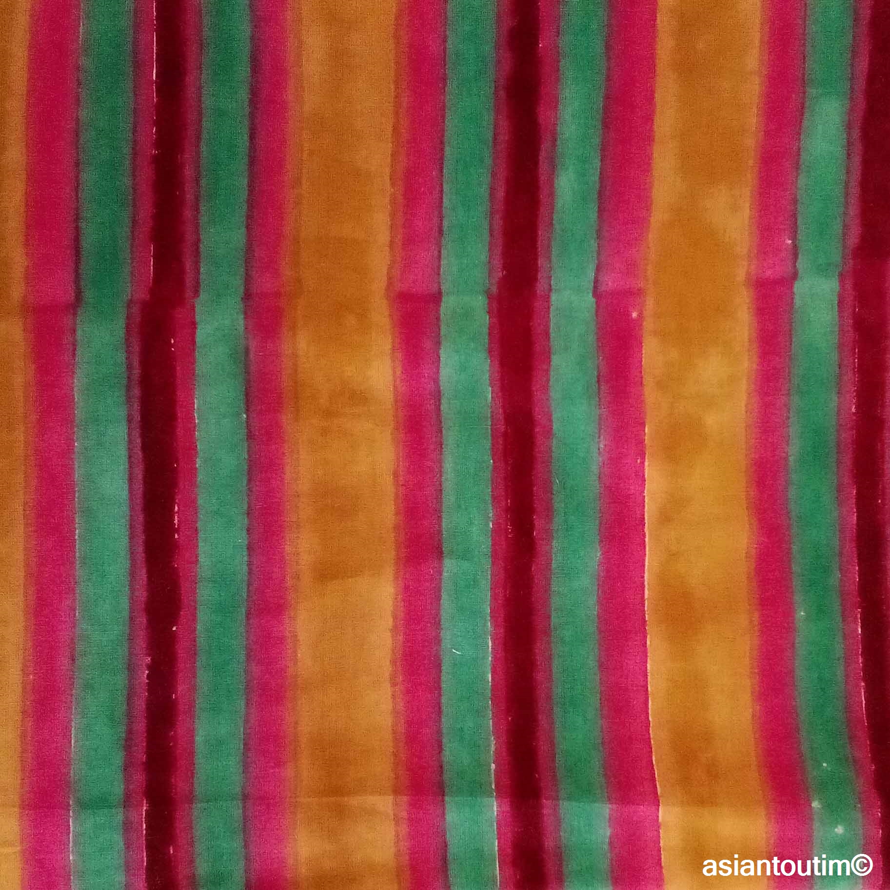 Chaque motif est réalisé par un artisan à l’aide d’un tampon en bois sculpté, appliqué avec minutie sur le coton tendu. Chaque couleur nécessite un passage distinct, rendant chaque pochette unique. Les légères irrégularités de l’imprimé témoignent d’un travail artisanal authentique, réalisé avec amour et patience.