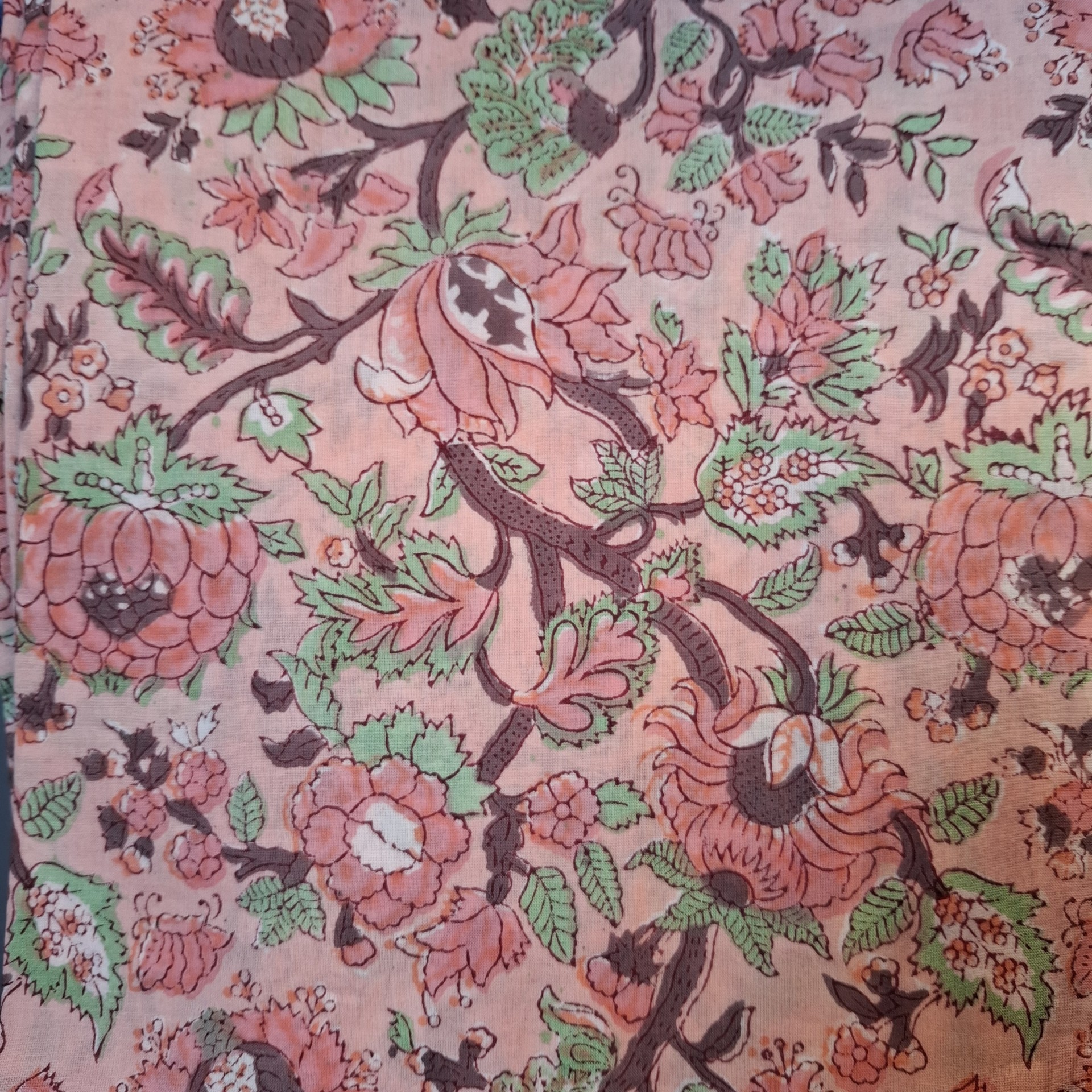 Chaque robe est imprimée à la main selon la technique traditionnelle du hand block print, utilisant des tampons de bois sculptés.