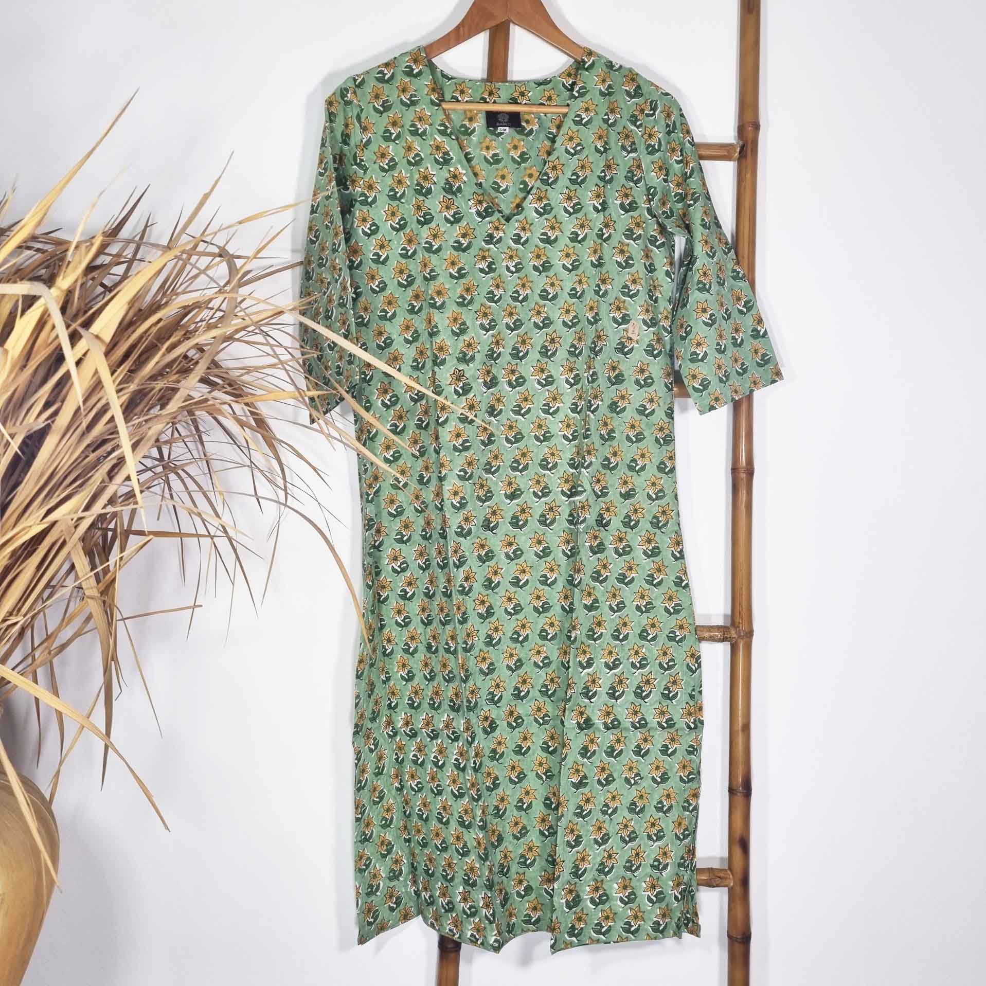 Robe d’été en coton indien – Hand Block Print – Col V