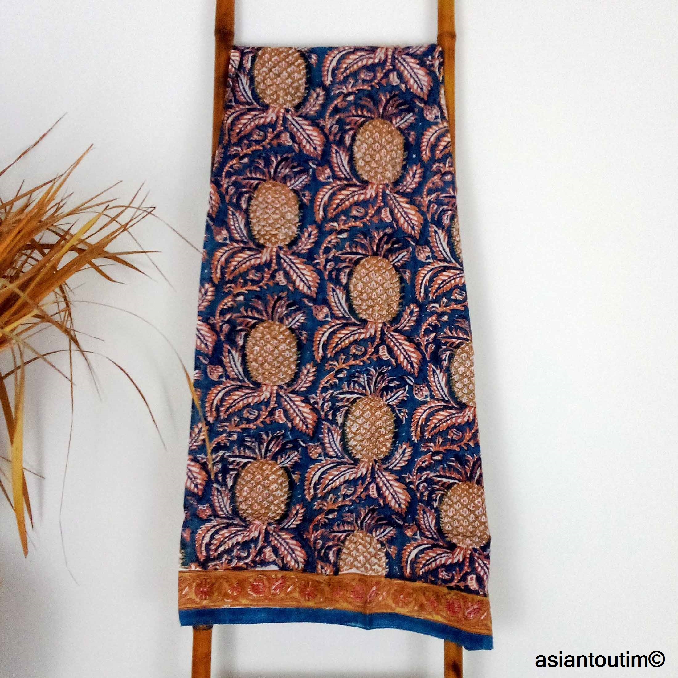 Réalisé en coton fleuri et rayé, ce grand cabas est imprimé à la main au tampon de bois selon la technique ancestrale du hand block print, emblématique de l’artisanat indien.