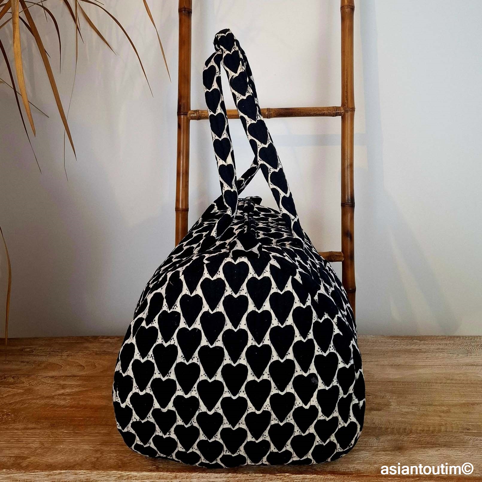 Sac en coton imprimé à la main avec trousse assortie, coloris Dany.