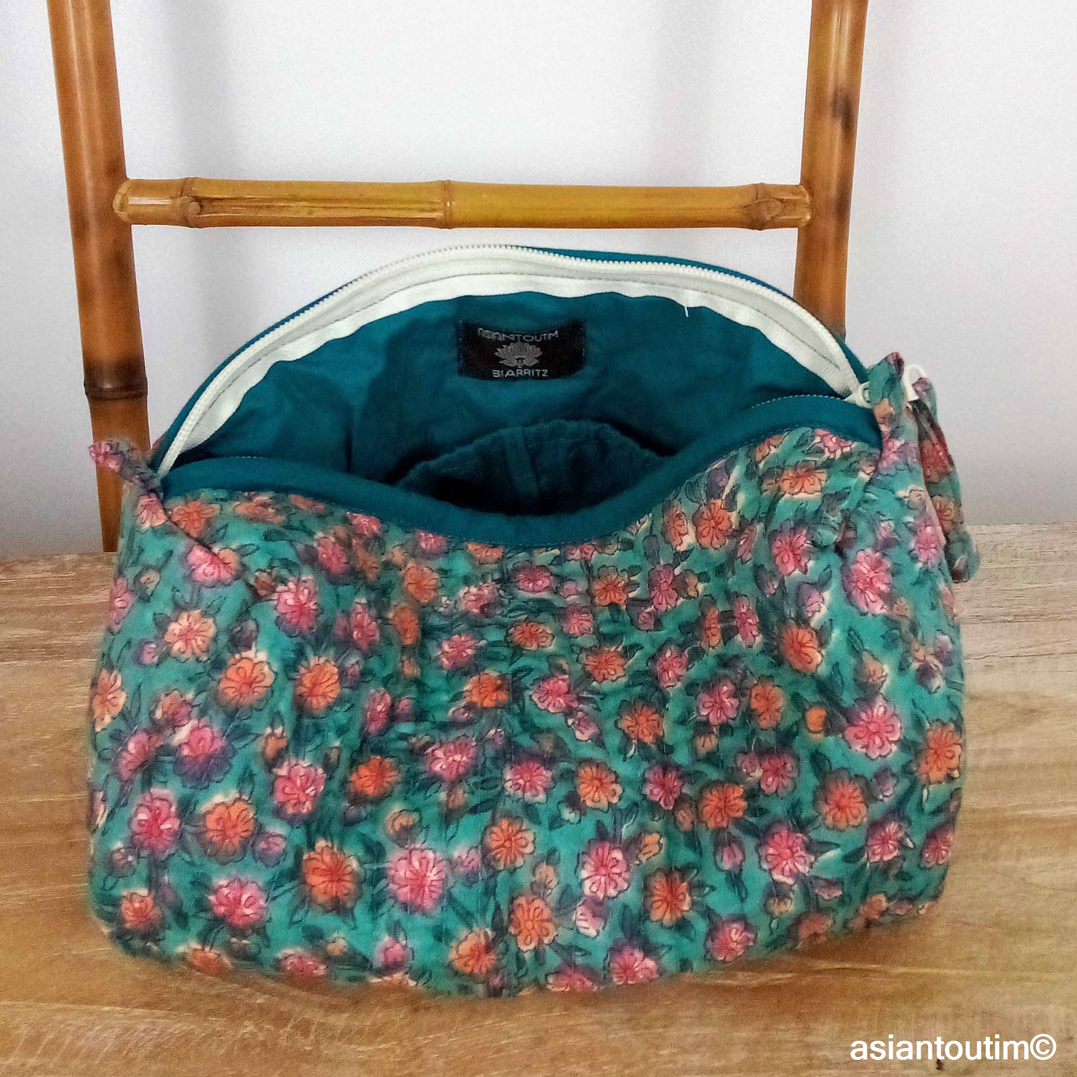 Sac en coton imprimé à la main avec trousse assortie, coloris June.