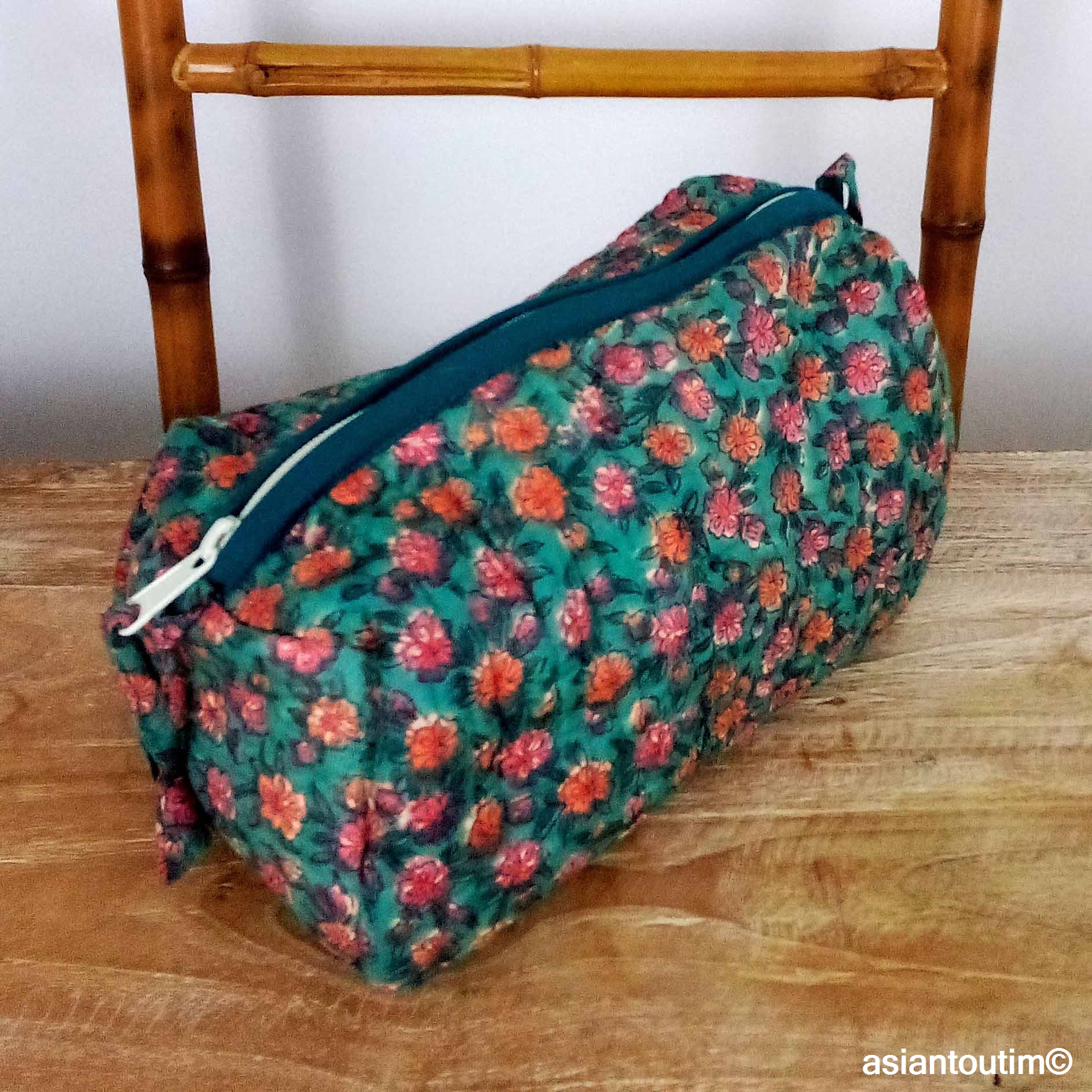 Cet ensemble sac week-end et trousse assortie séduit par ses motifs imprimés à la main et son esprit bohème chic. Spacieux, pratique et esthétique, il vous accompagne aussi bien en voyage que dans le quotidien.