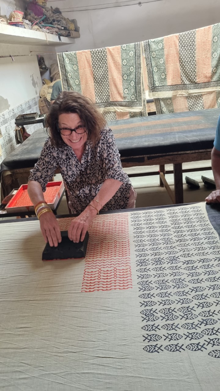 Chaque motif est imprimé à la main selon la technique traditionnelle du block-print, rendant chaque pièce unique.