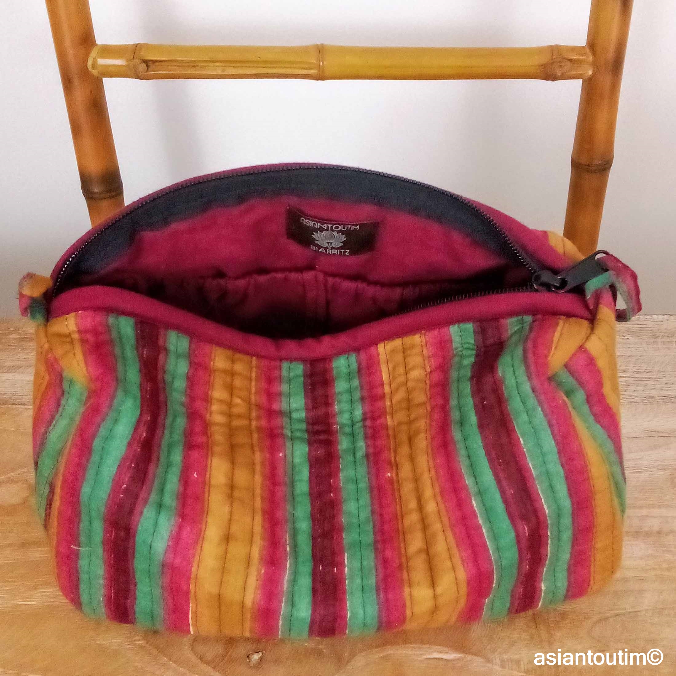 Sac en coton imprimé à la main avec trousse assortie, coloris Maya.