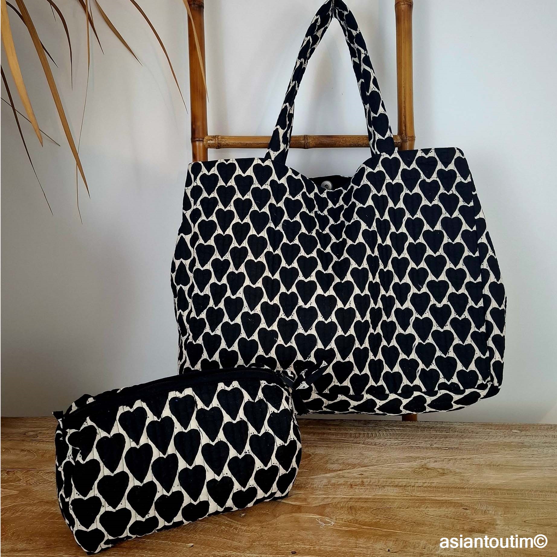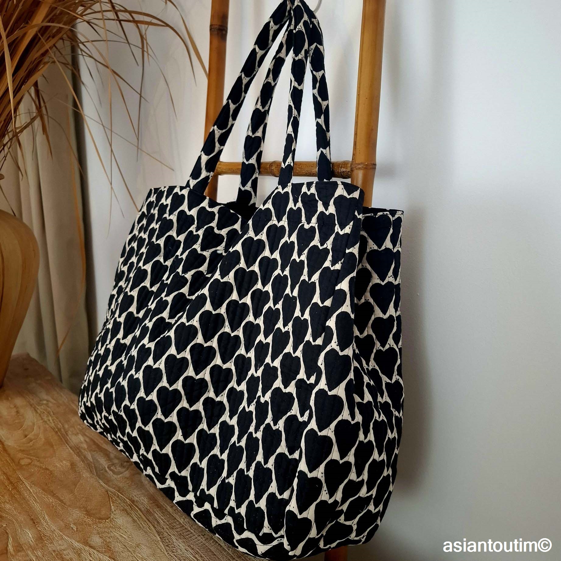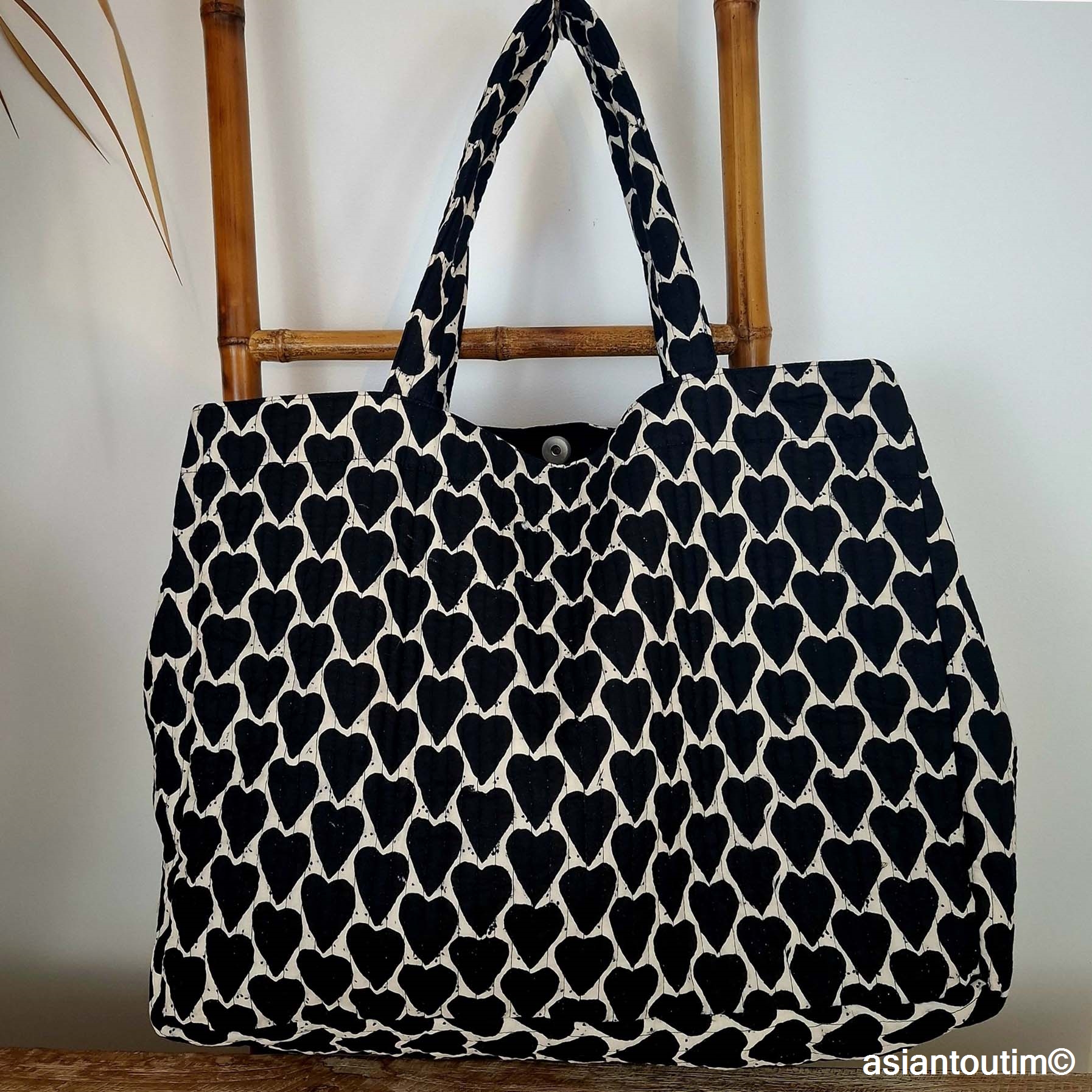 Grand cabas à shopper matelassé en coton, coloris Dany, imprimé à la main en Inde, motif Sanganer. Léger, spacieux et pratique, il est idéal pour l’été : plage, ville, sport ou escapades du quotidien.