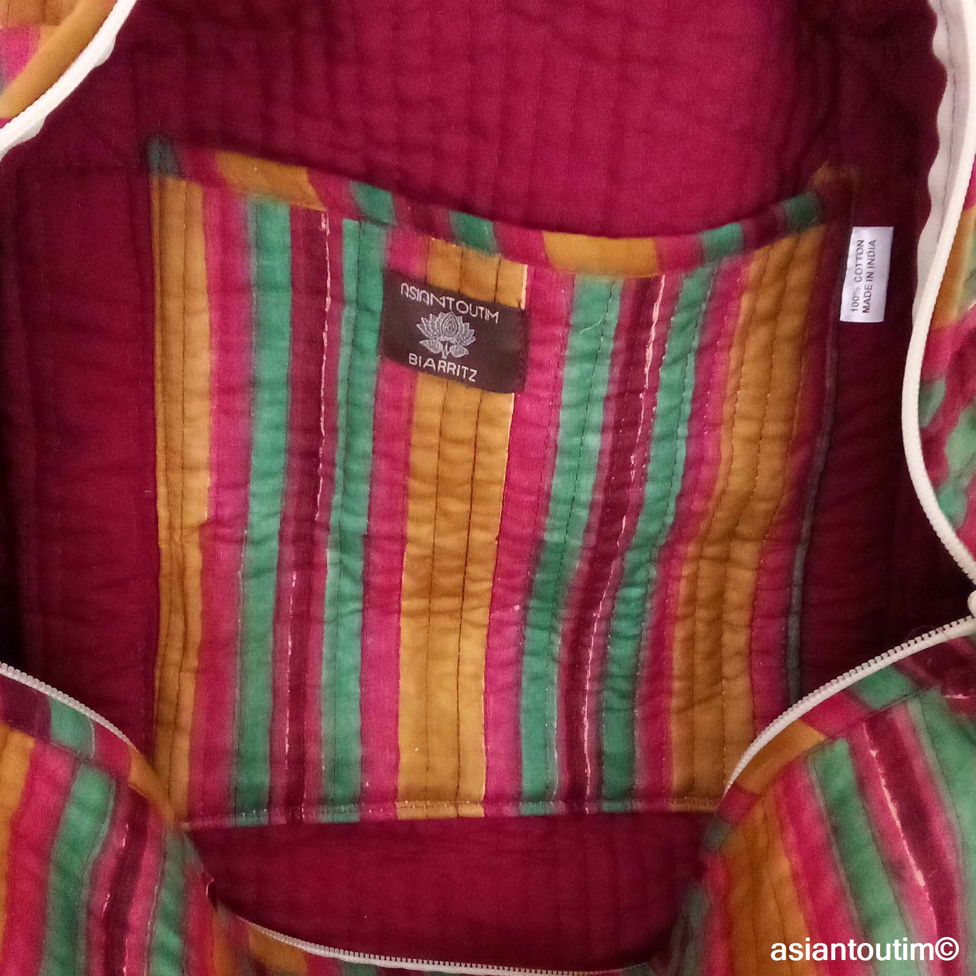 Fabriqué en Inde selon des techniques traditionnelles, ce sac est réalisé en petite quantité exclusivement pour notre boutique. Chaque pièce est imprimée à la main à l’aide de tampons de bois gravés.