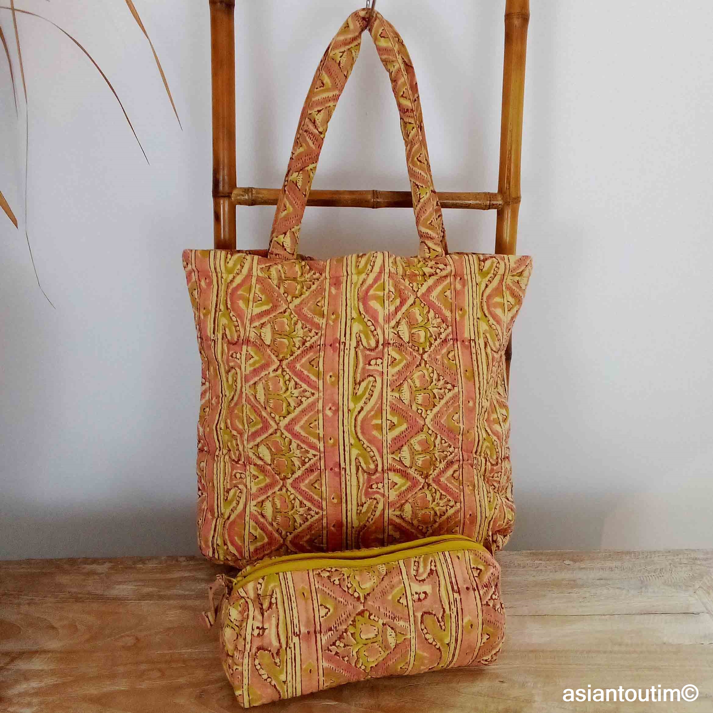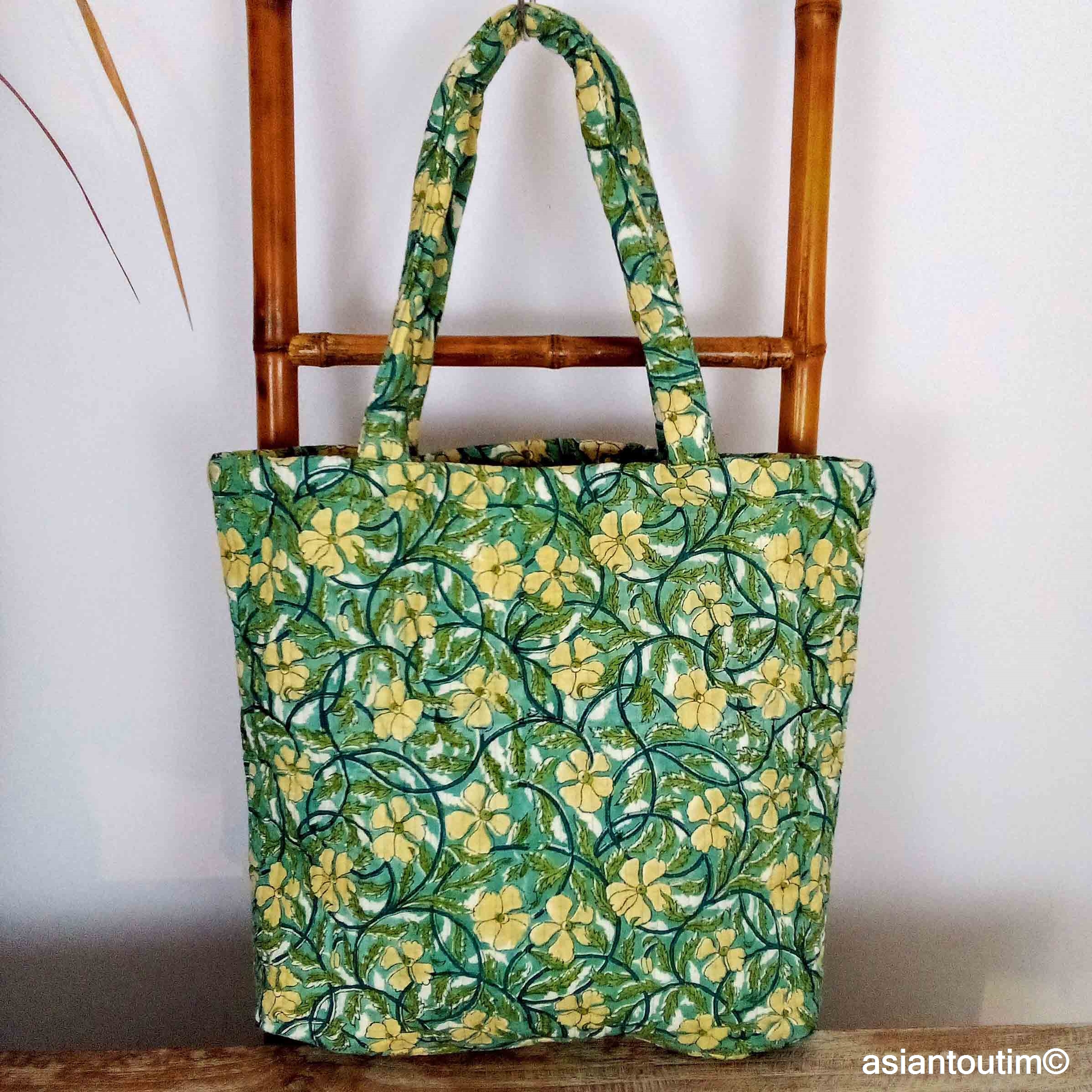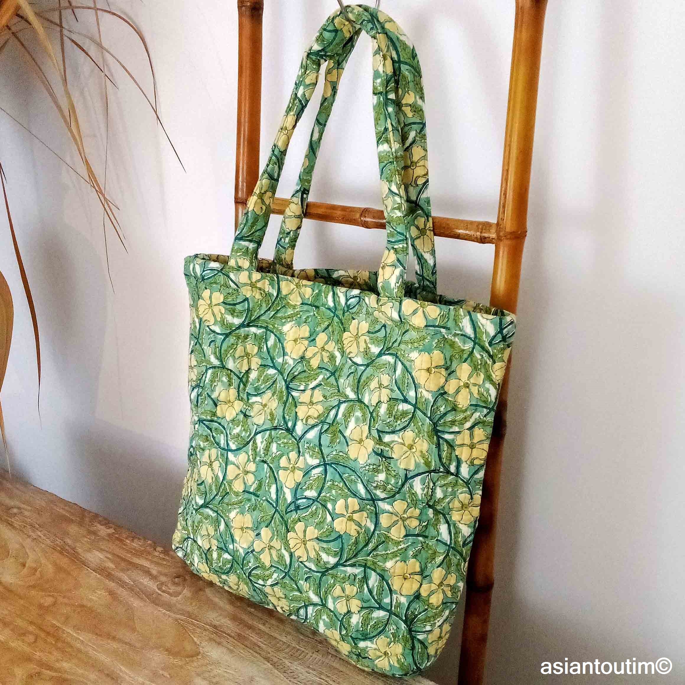 👜 Tote bag matelassé en coton, imprimé à la main en Inde grâce à la technique traditionnelle du hand block print.