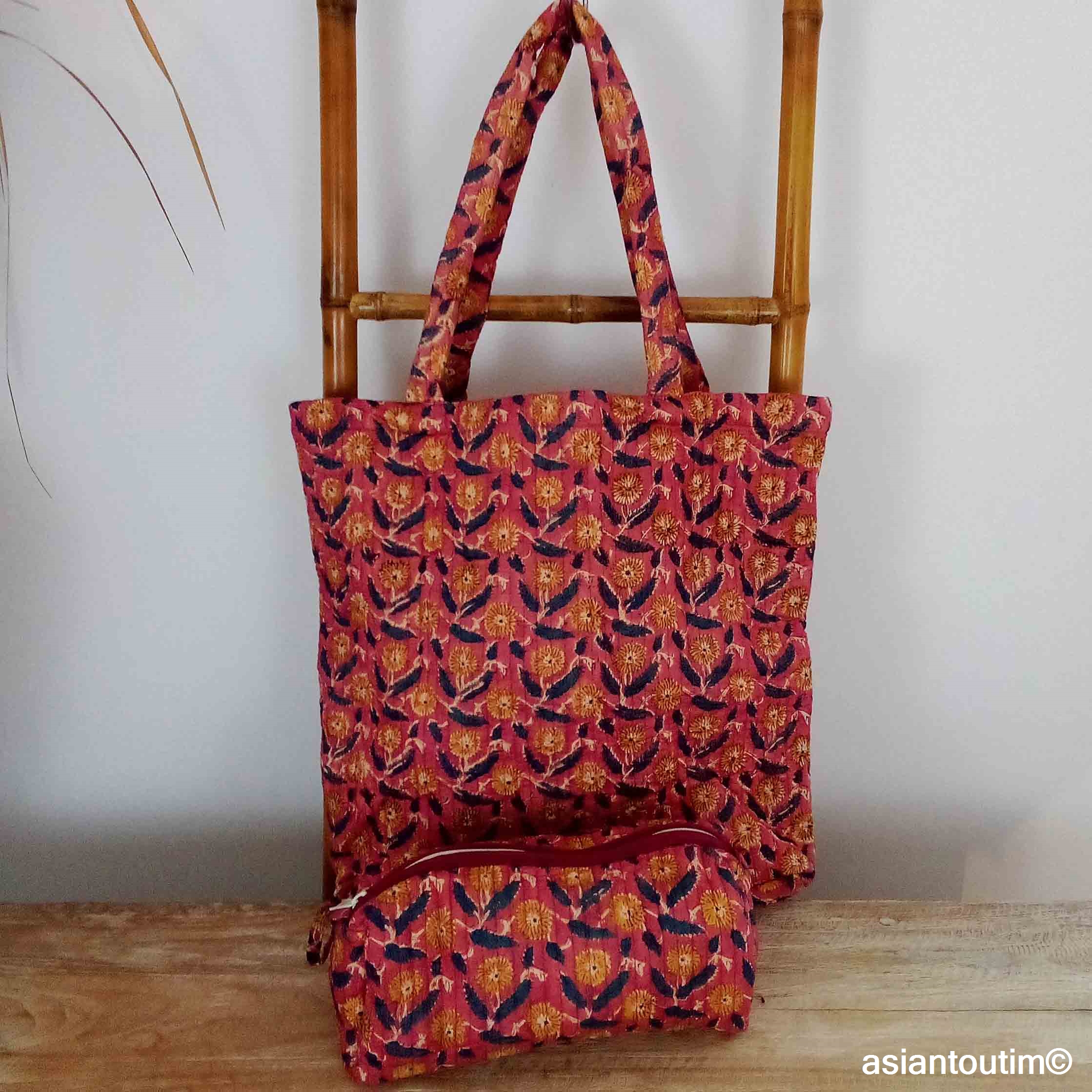 👜 Tote bag matelassé en coton, imprimé à la main en Inde grâce à la technique traditionnelle du hand block print.