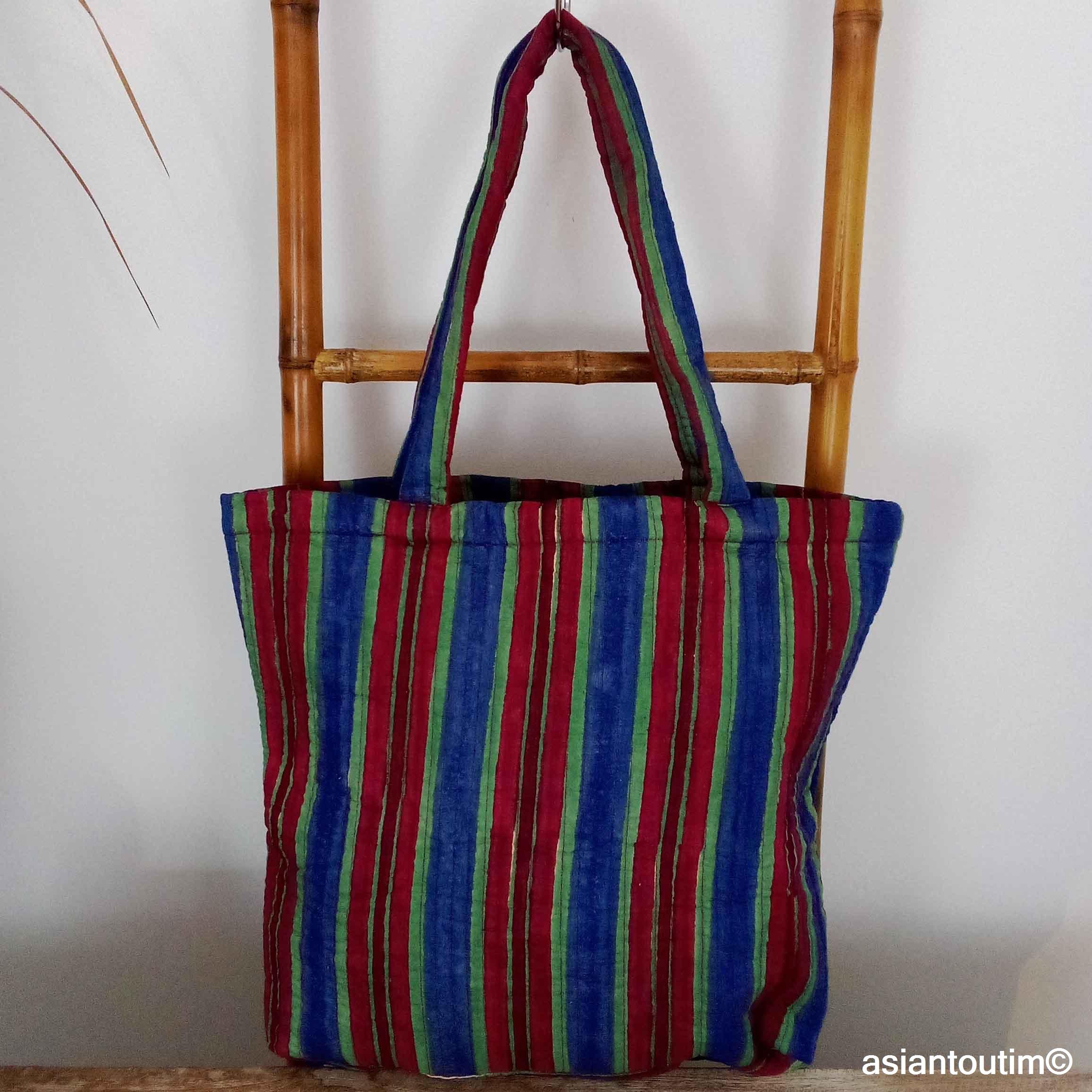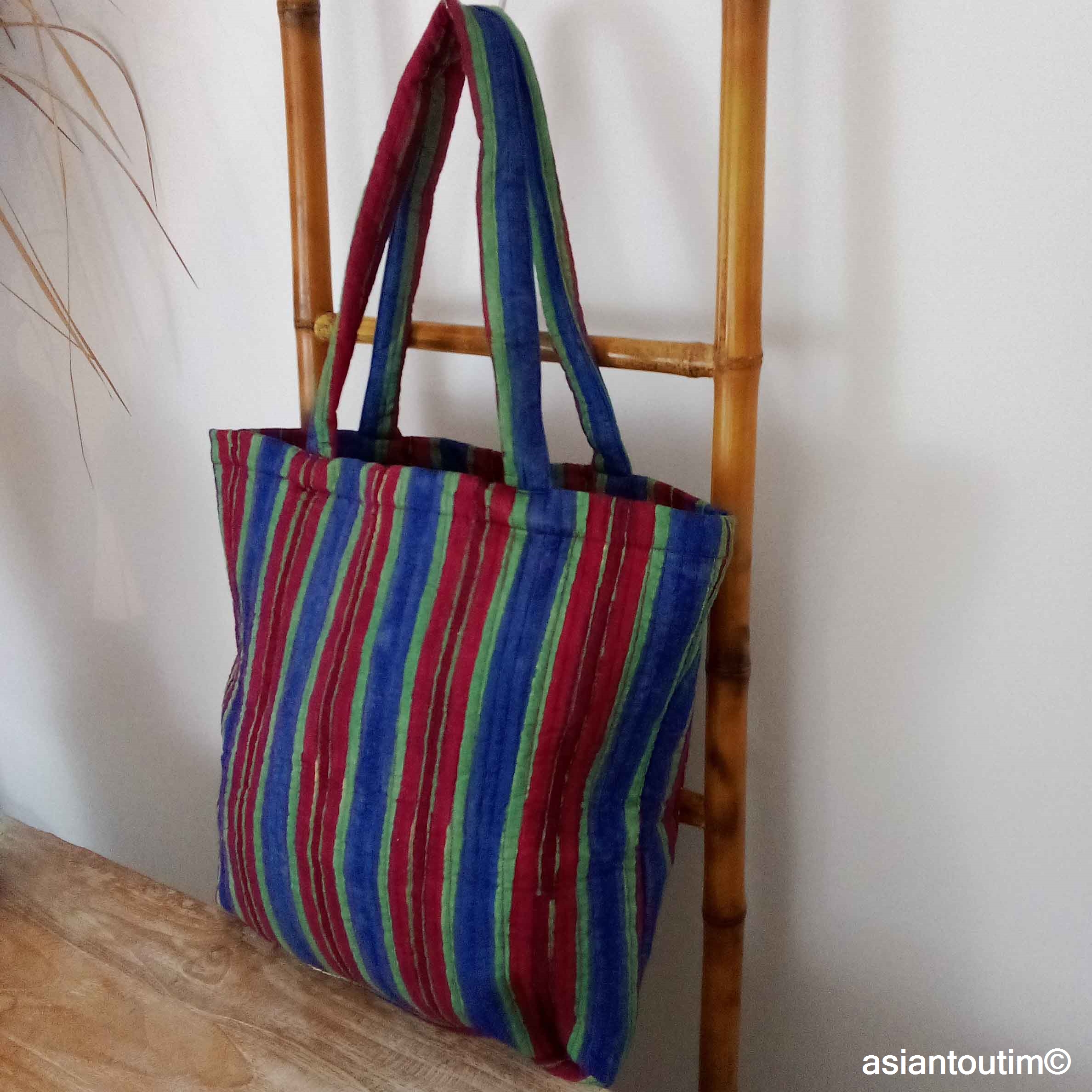 👜 Tote bag matelassé en coton, imprimé à la main en Inde grâce à la technique traditionnelle du hand block print.