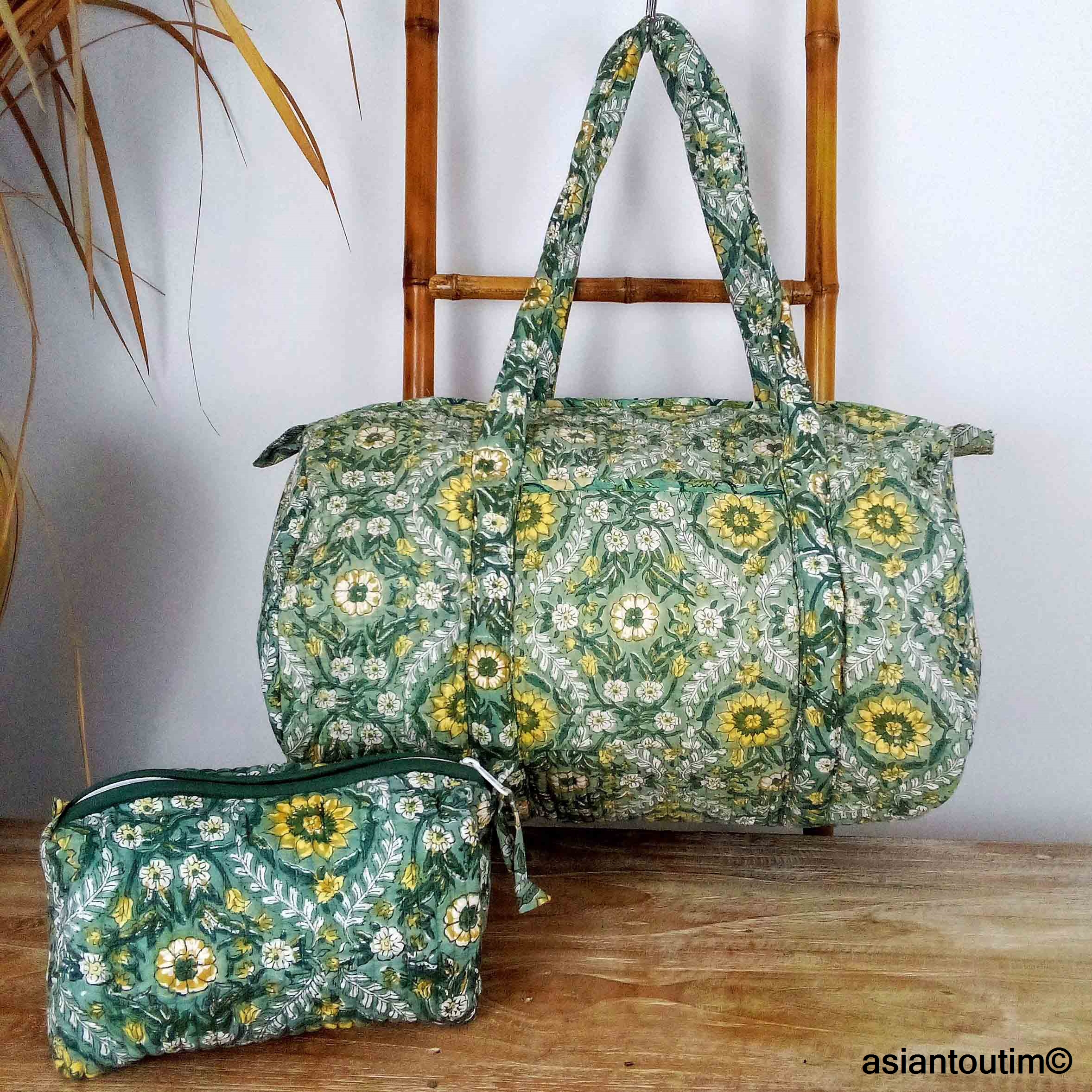 Trousse confectionnée en 100 % coton. Impression artisanale à base de pigments. Lavage conseillé à la main ou en cycle délicat à froid, séparément, afin de préserver les couleurs et la qualité du tissu. Séchage à l’air libre recommandé.